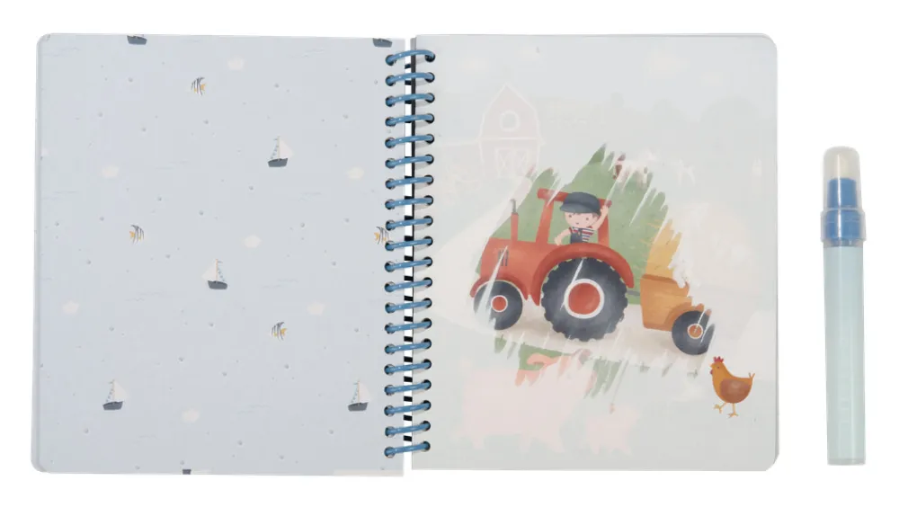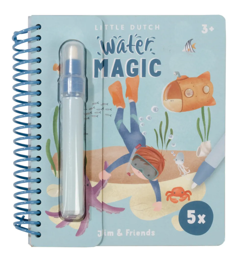 Det her ligner magi! Med Little Dutch Jim & Friends malebogen kan du lave de smukkeste tegninger af Jim og hans venners forskellige aktiviteter. På hver side er et stykke allerede farvelagt så du kan se antydning af tegningen, der er gemt der. Fyld den medfølgende specialtusch med vand og begynd at tegne. Når der kommer vand på siden, dukker de smukkeste fineste tegninger op. Når siden tørrer, kan du lave tegningen igen og igen. Bogen har en praktisk spiralryg, er lavet af robust pap og med de søde Little Dutch designs og farver. Bogen er perfekt både derhjemme og til at have med!