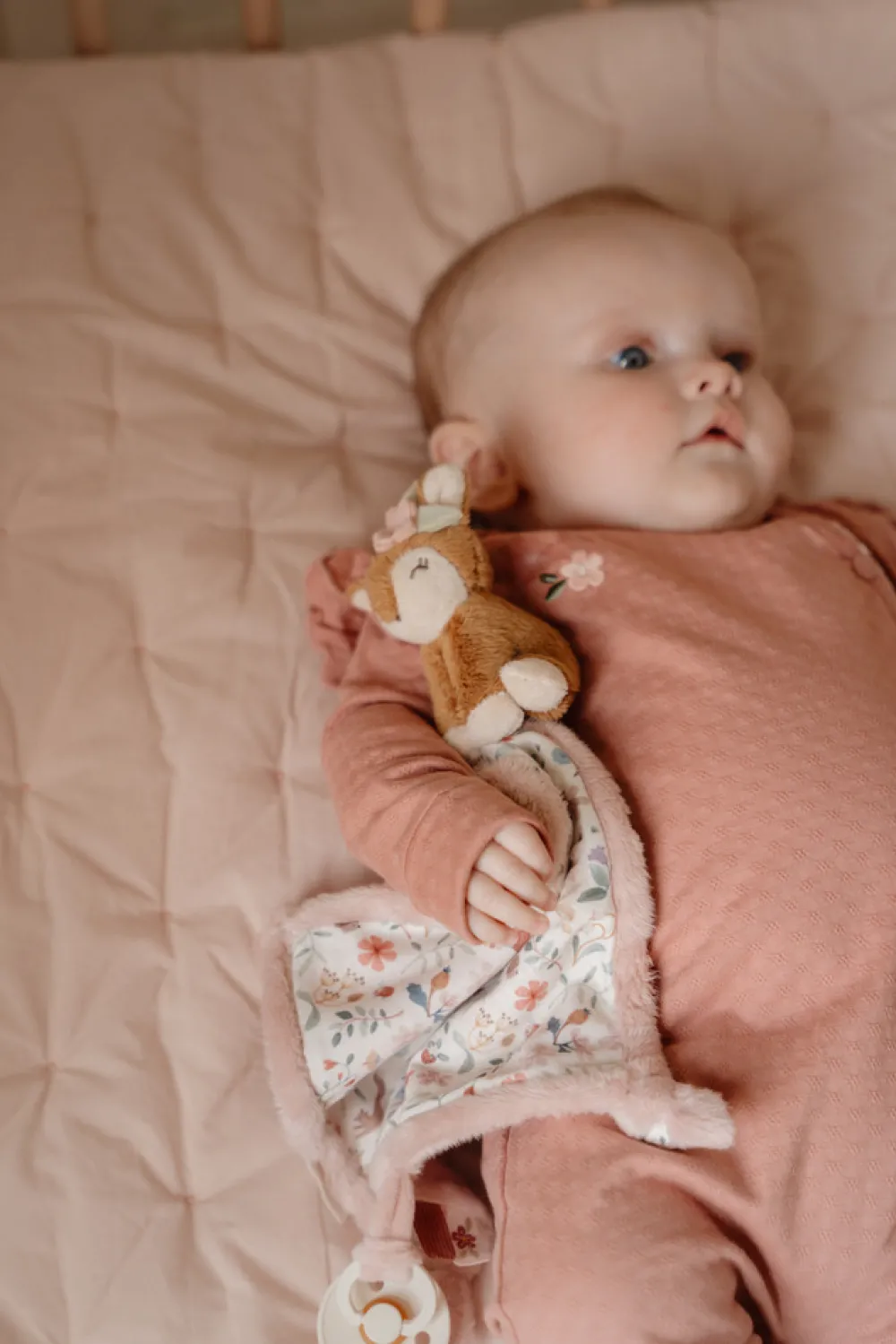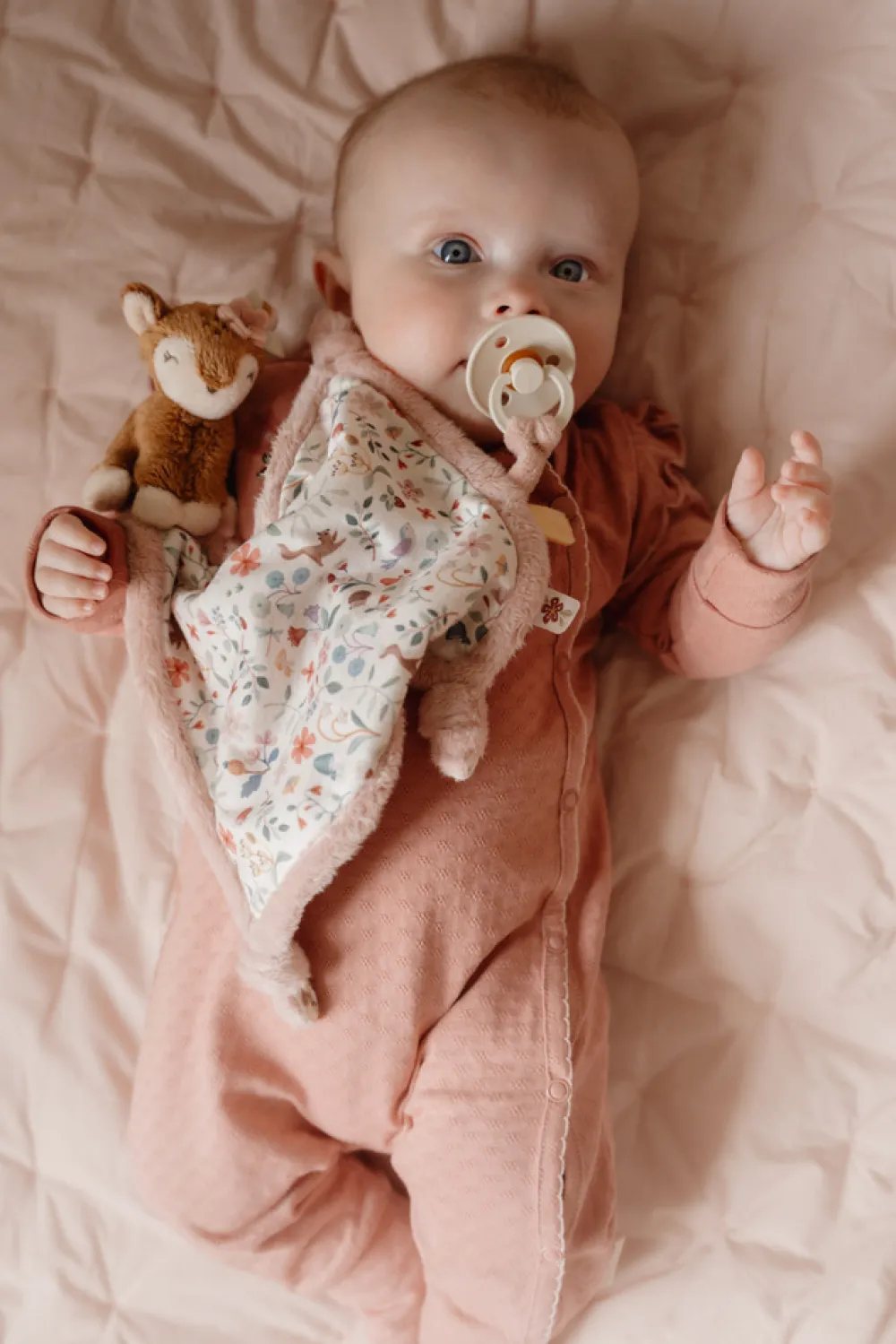 Blød og sød! Hav denne bløde nusseklud inden for rækkevidde, klar til at trøste når som helst og hvor som helst. I det nye Fairy Garden-design er den bløde klassiker et must-have for alle nyfødte. Nussekluden har en række sjove funktioner, som babyer kan udforske. Forskellige mærker, der stimulerer sanserne, knuder, der er nemme at gribe fat i, og en løkke til at fastgøre en sut eller bidering. Den bløde lille hjort gør nussekluden ekstra nuttet.