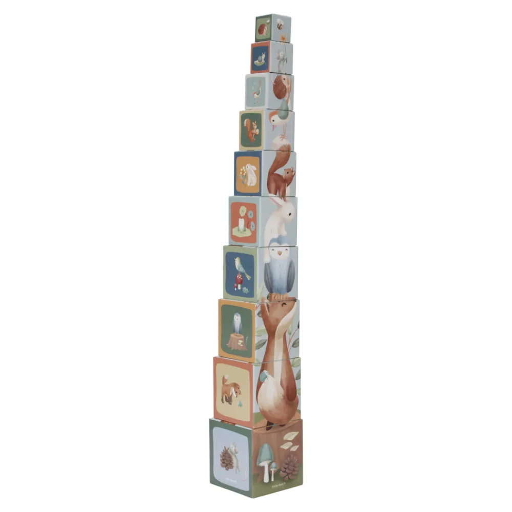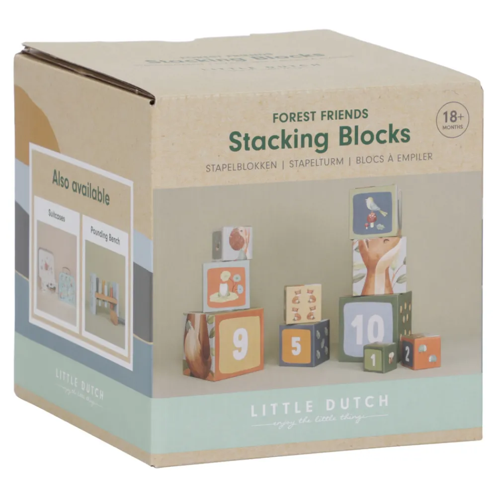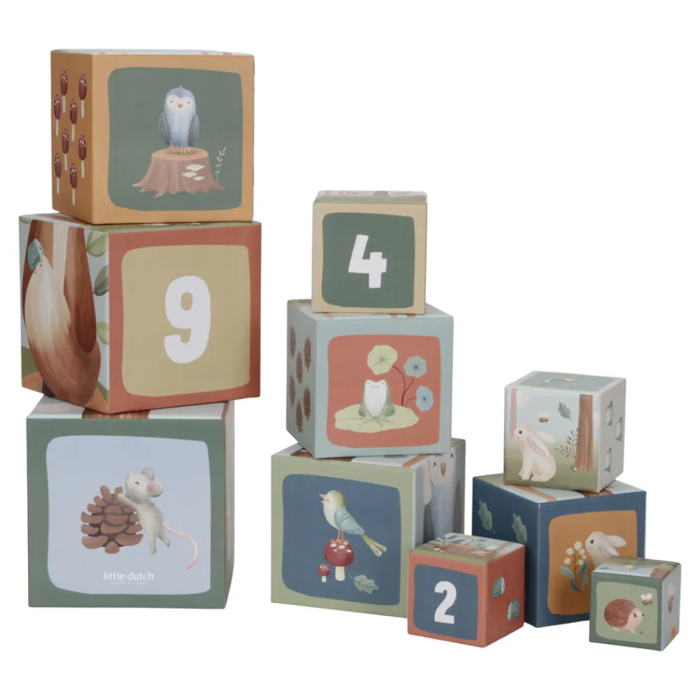 Med disse Stabelkasser kan børn på en legende måde lære at tælle til 10. Hver klods har dejlige illustrationer fra Forest Friends-kollektionen, bl.a. ræv, egern, kanin, pindsvin, ugle og en svamp. De kan stables til et højt tårn eller stilles op på en lang række. De små kasser kan placeres inde i de større, så de er nemme at rydde op. Kasserne er lavet af robust pap, så de er meget holdbare. Den mindste kasse måler 5 cm, og den største er 14 cm.