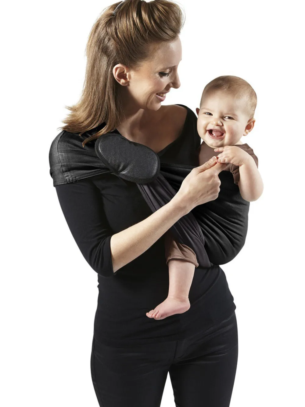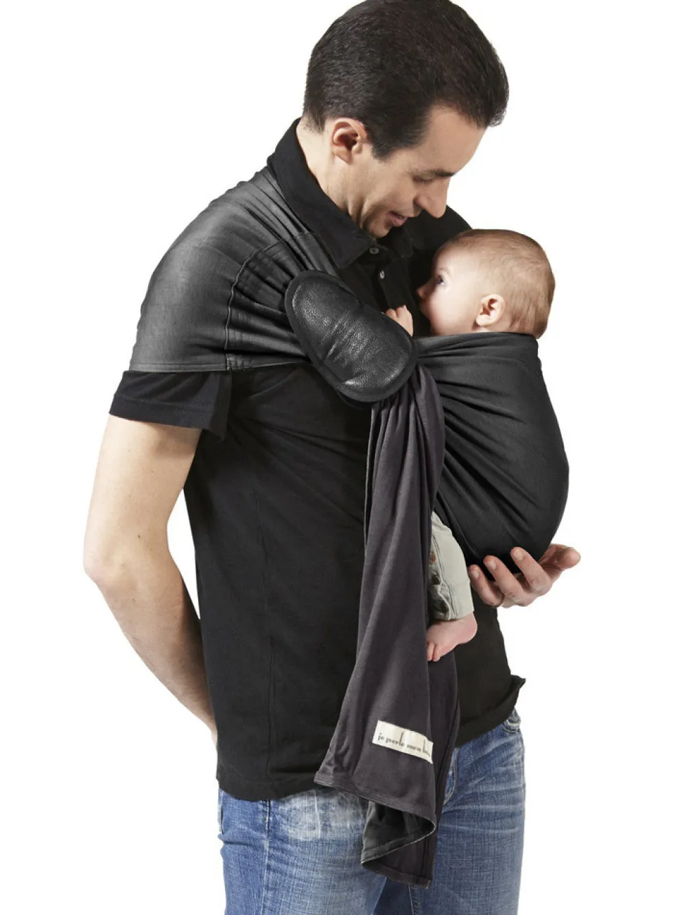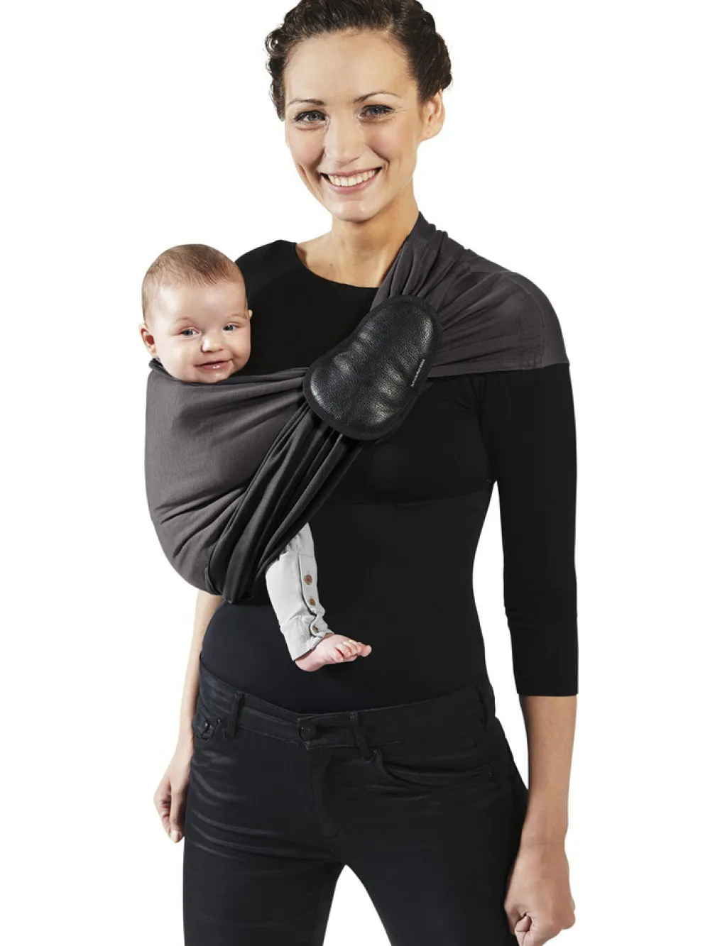 Ringslyngen fra franske je porte mon bébé. Super let at bruge, her skal der ikke bindes en knude. Du tager den bare over skrå, indstiller den i ringen og sætter dit barn i den. Ringslyngen er bedst egnet til kortere ture, ønsker du at bære dit barn over længere tid, så bør du overveje en vikle i stedet.