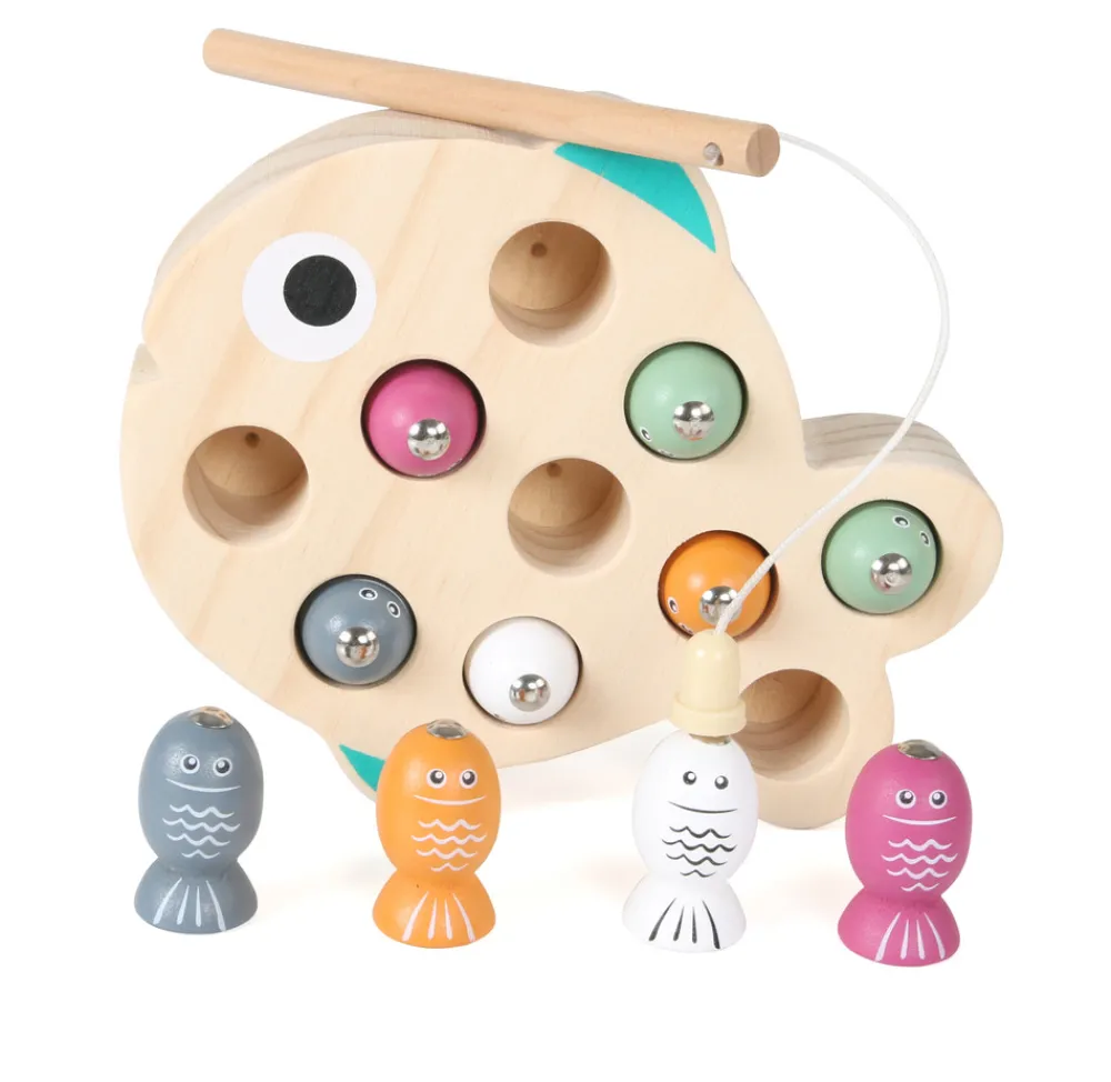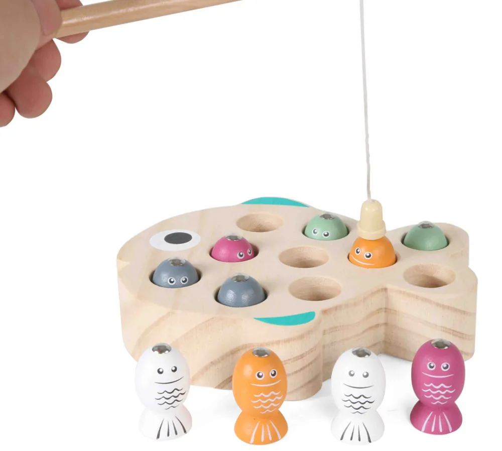 Fiskespil med numre under fisken. Spil om, hvem der kan få det højeste antal eller spil huskespil. Stimulerer øje hånd ko-ordinationen.