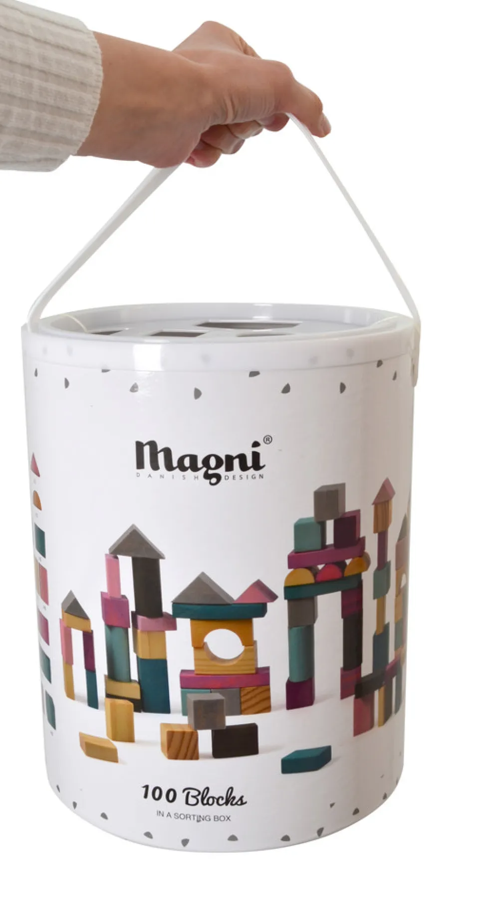Spand med 100 træklodser og smart putteboksfunktion i låget.