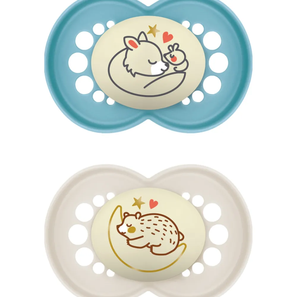 En klassisk sut, der er skånsom mod huden takket være de store lufthuller og den knoprede inderside. Sugedelen er lavet af silkeblød silikone, MAM Skin SoftTM, som føles blød og velkendt ligesom mors hud og accepteres af 94% af babyerne*. Med sin selvlysende knop er MAM Original Night let at finde i mørke – for lettere nætter.MAM Original leveres i en praktisk opbevarings- og steriliseringsæske, som gør det nemt at sterilisere sutterne i mikrobølgeovnen.