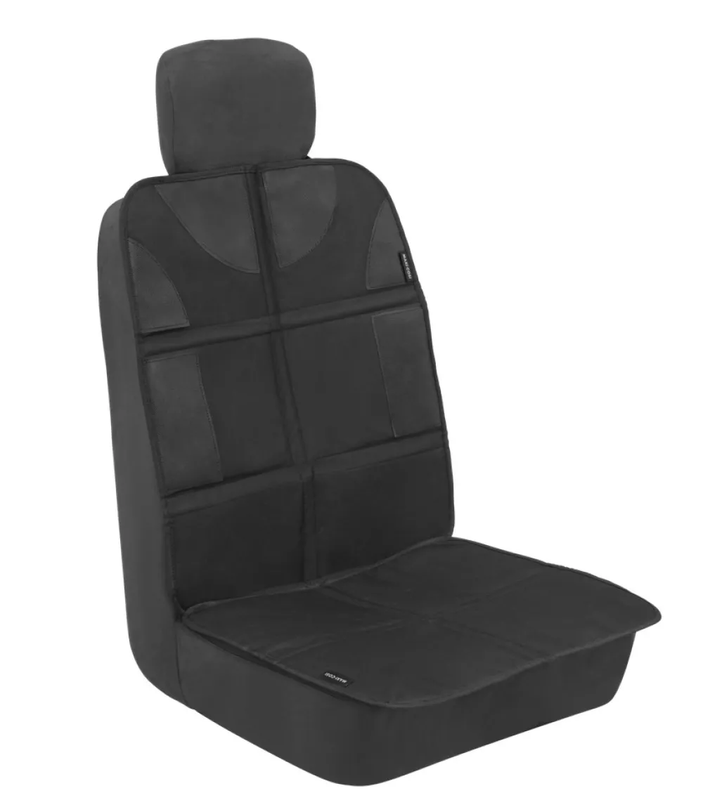 Bagsædebeskytteren, som fuldt ud dækker og beskytter bagsædet, hvor din autostol sidder. Du kan nemt installere den under alle vores autostole og i alle typer biler, samtidig med at der er plads til adgang til ISOFIX-stik.