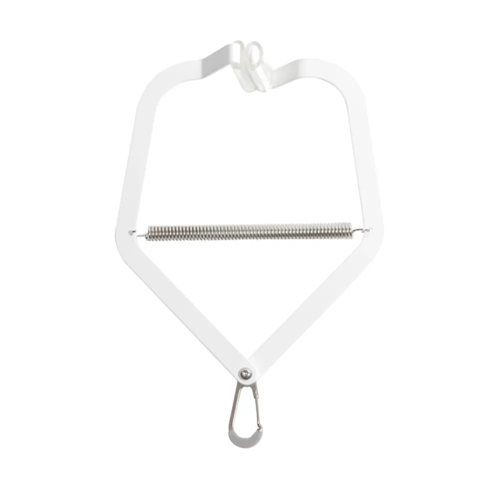 Du kan tage din vugge med under armen uanset, hvor du skal hen, så længe, der er en dørkarm til stede. Karmbeslaget gør det nemlig nemt at opsætte din slyngevugge med vuggemotor i en dørkarm – både derhjemme og når I er på besøg hos venner og familie. Dette er det nye forbedrede design, der har en fastmonteret karabinhage med gummiisolering, hvilket gør det hurtigt og nemt at montere – og samtidig sikret mod metalsplinter.