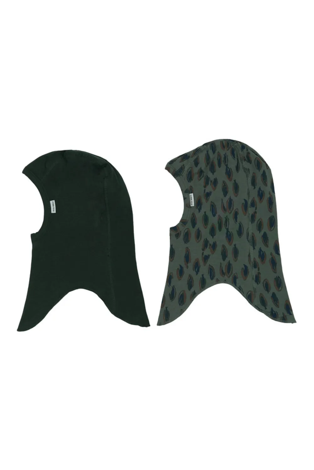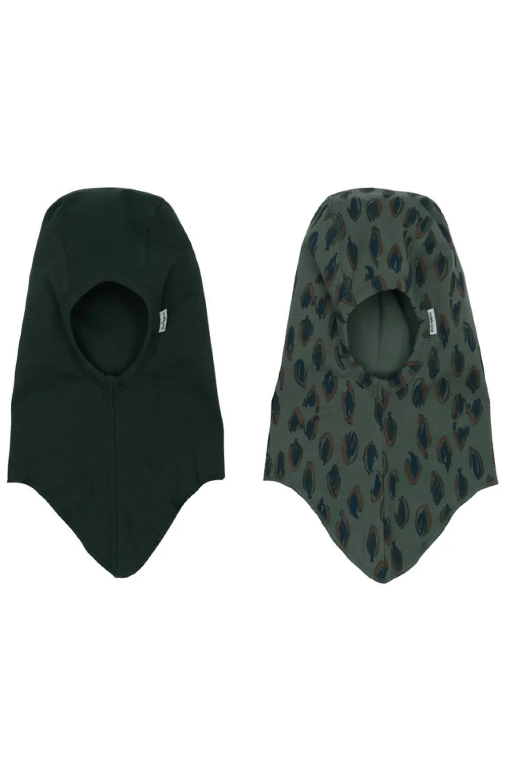 2 pak mikk-line elefanthuer af 100% økologisk bomuld. Huerne er fremstillet i et dobbelt lag stof udelukkende af naturlige fibre, og huerne er bløde, lette og åndbare. Pakken består af en enkelt ensfarvet elefanthue og en elefanthue i et fint printmønster, der fås i forskellige varianter. Elefanthuen dækker det meste af barnets hoved, hals og ansigt, så den beskytter barnet mod kulde og vind, når det leger og udforsker naturen under den åbne himmel.