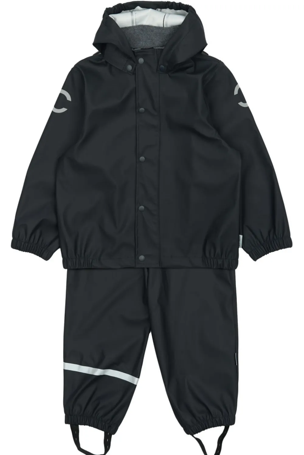 Klassisk PU regntøj med seler fra mikk-line. Sættet består af en vandtæt regnjakke og regnbukser, der begge er lavet af blødt PU-materiale. Regntøjet er skabt til at børn kan trodse regnen og have det sjovt med at hoppe i vandpytter, glide ned ad den våde rutsjebane, lege i den våde sandkasse og meget mere.