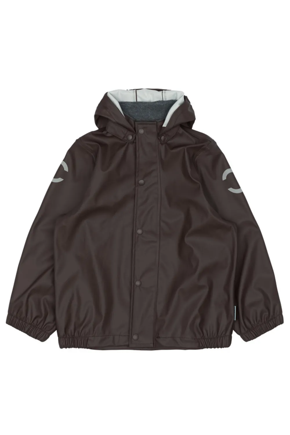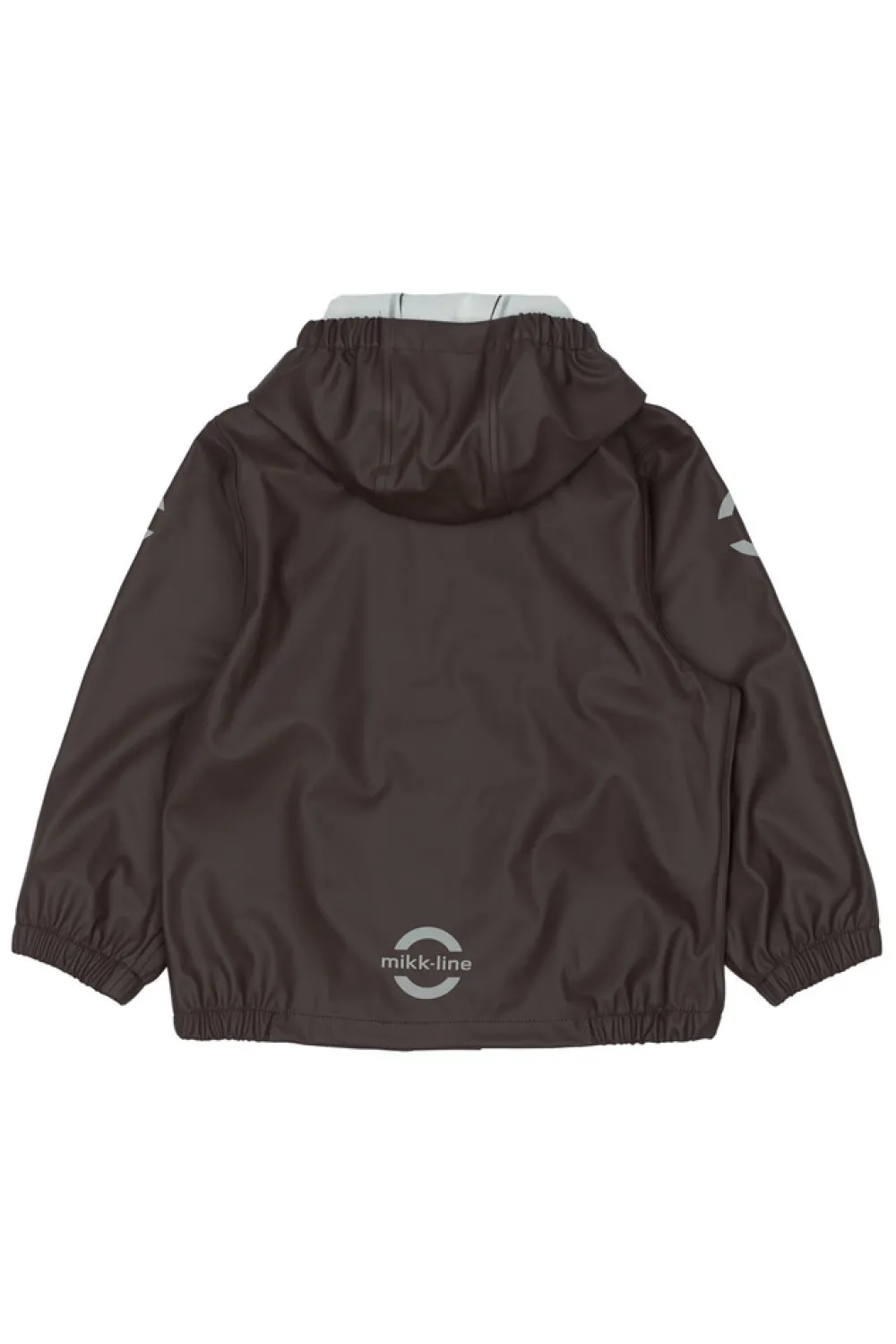 Praktisk og funktionelt recycled regnsæt fra mikk-line, der holder dit barn tørt. Regntøjet er udstyret med refleksdetaljer så dit barn kan færdes sikkert i mørket. Regnsættet er naturligvis både vand- og vindtæt. Sømmene er svejsede, hvilket forhindrer vand i at trænge igennem samlingerne. Buksen har fodstropper, som holder buksen under gummistøvlen. Regnbukserne har justerbare seler, tætsiddende elastik i taljen og et ekstra stykke stof der dækker både foran og bagpå kroppen.