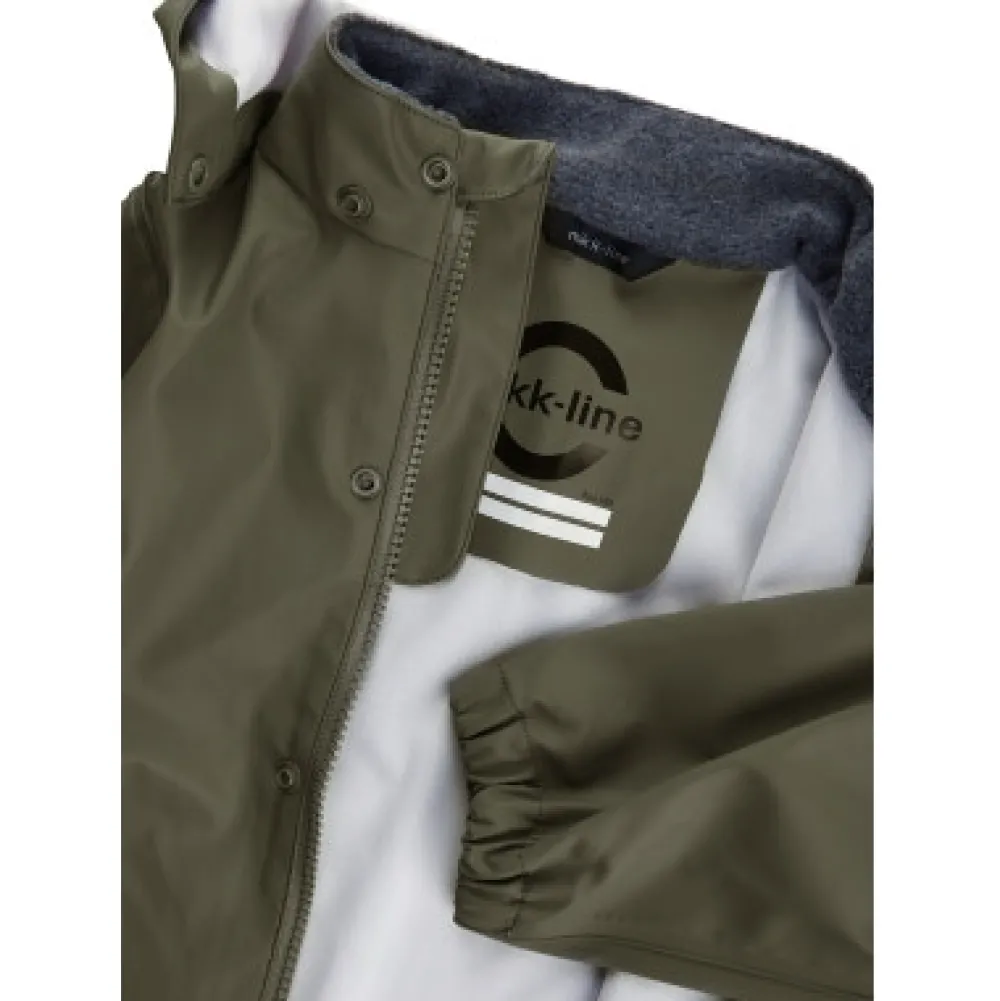 Klassisk PU regntøj uden seler fra mikk-line. Sættet består af en vandtæt regnjakke og regnbukser, der begge er lavet af 100% genanvendt og blødt PU-materiale. Regntøjet er skabt til at børn kan trodse regnen og have det sjovt med at hoppe i vandpytter, glide ned ad den våde rutsjebane, lege i den våde sandkasse osv. Placer de justerbare fodstropper under støvlerne, for at holde fødderne tørre og undgå at bukserne glider op. Buksernes taljeomkreds kan tilpasses efter behov, og så har sættet har et indvendigt navneskilt med plads til mere end ét navn, så giv det gerne videre, så endnu et barn kan få glæde af det.