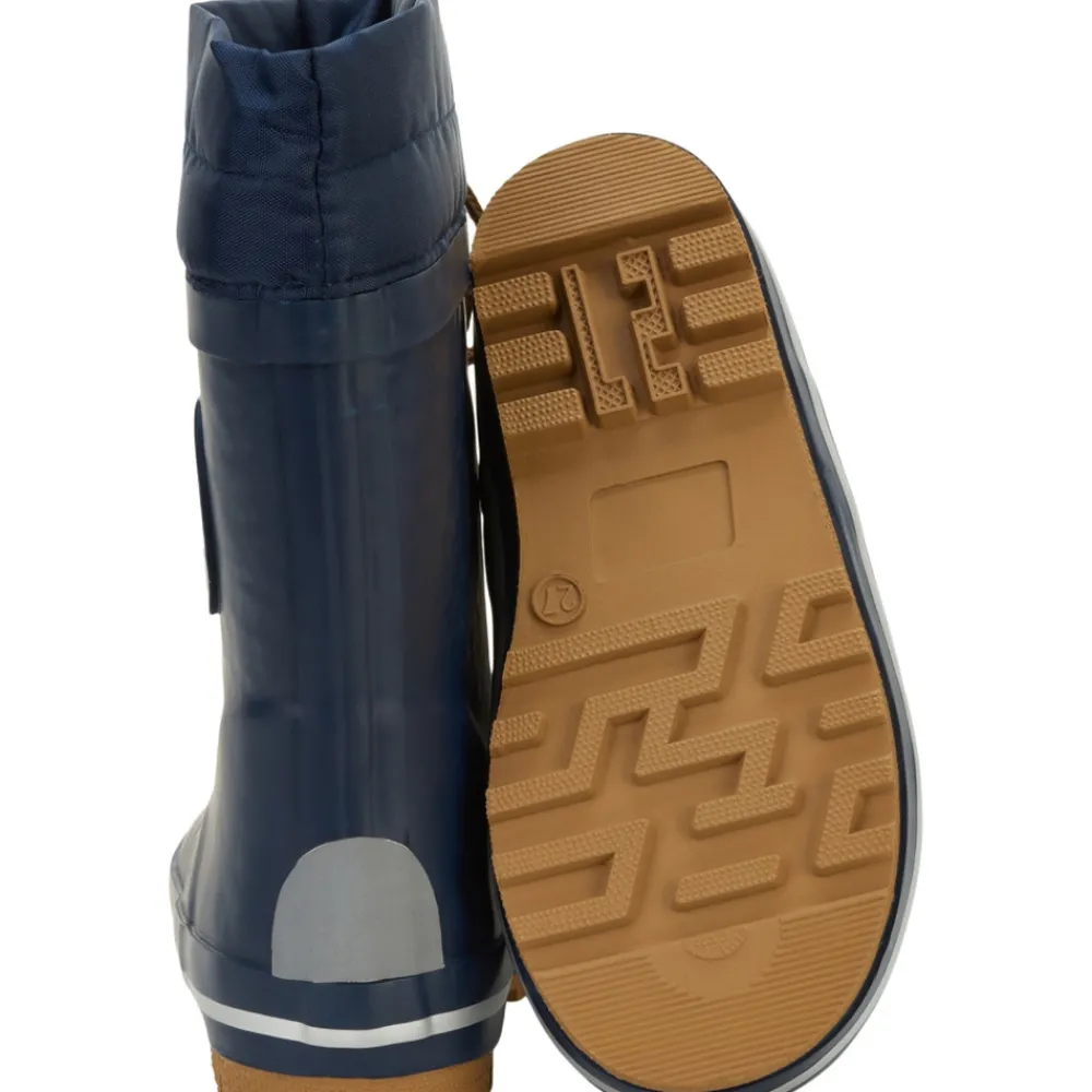 Varme vintergummistøvler med blødt uld-for. De er helt perfekte til barnet, der elsker at træde og hoppe i vandpytter. Gummistøvlerne er vandtætte og holder derfor dit barns fødder tørre og rene. I bunden af gummistøvlerne er der en blød og udtagelig sål. Gummistøvlerne er desuden forsynet med riller under bunden, som er med til at lede vandet væk. Der er derfor masser af plads til leg og bevægelse i det våde vejr!