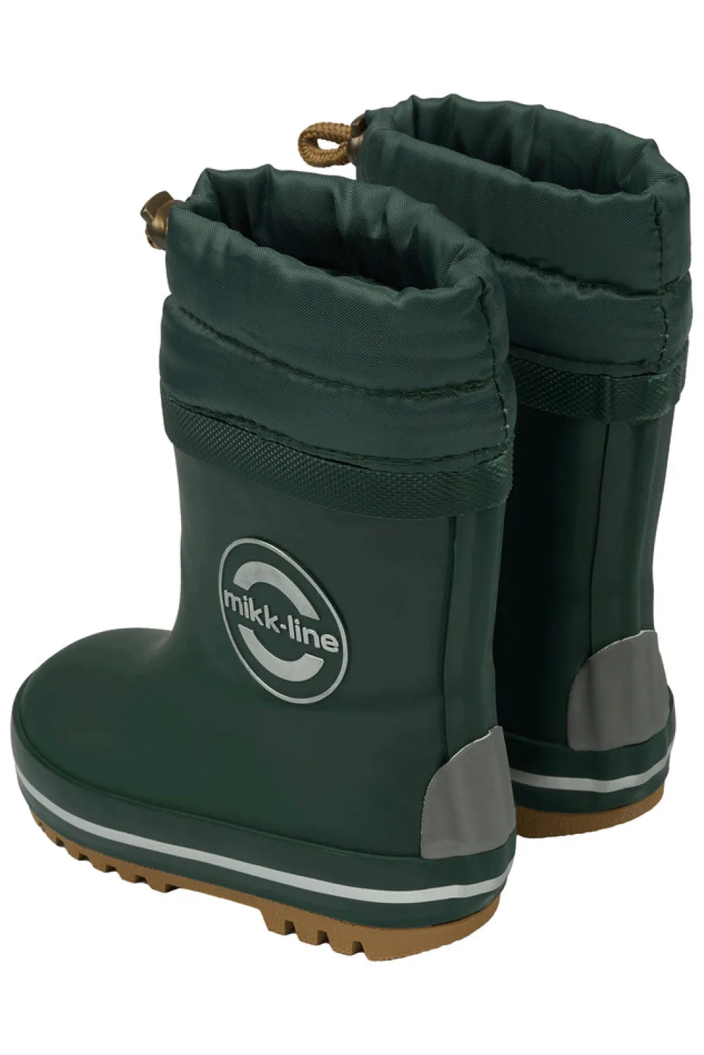 Varme vintergummistøvler med blødt uld-for. De er helt perfekte til barnet, der elsker at træde og hoppe i vandpytter. Gummistøvlerne er vandtætte og holder derfor dit barns fødder tørre og rene. I bunden af gummistøvlerne er der en blød og udtagelig sål. Gummistøvlerne er desuden forsynet med riller under bunden, som er med til at lede vandet væk. Der er derfor masser af plads til leg og bevægelse i det våde vejr!