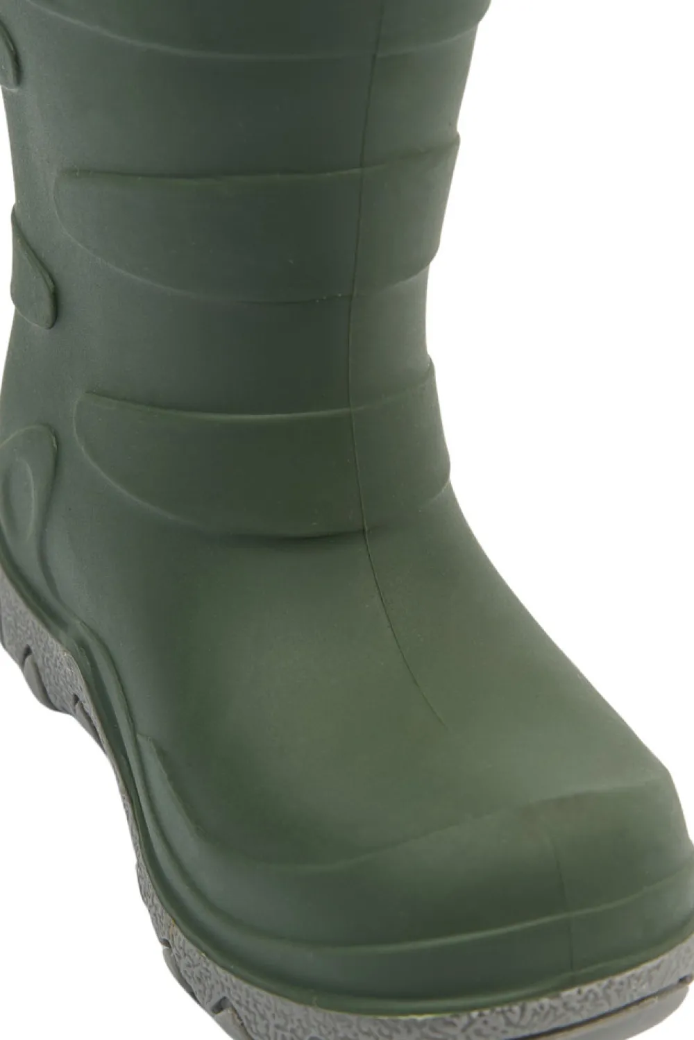 - Bløde og aftagelige indlægssåler, der giver dig mulighed for at finde den rigtige skostørrelse til dit barn. Hvis der kommer vand ind i gummistøvlerne, kan du fjerne indlægssålerne og hænge dem til tørre.