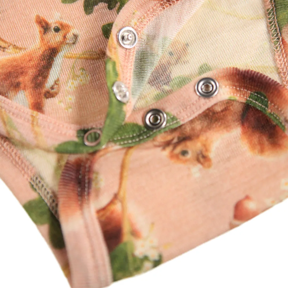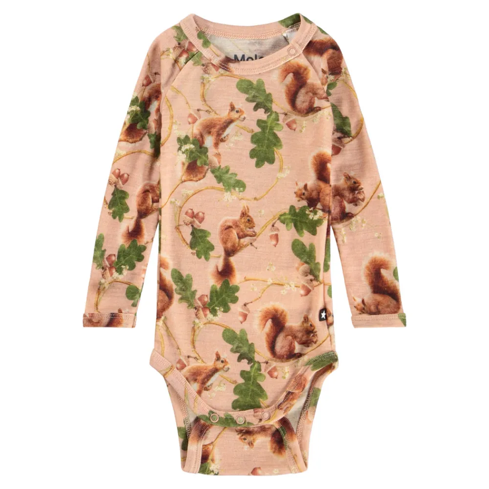 Behagelig bodystocking i blød merinould, designet med trykknapper i halsudskæringen og mellem benene for nem omklædning. Et ideelt basislag til lag-på-lag i omskifteligt vejr.