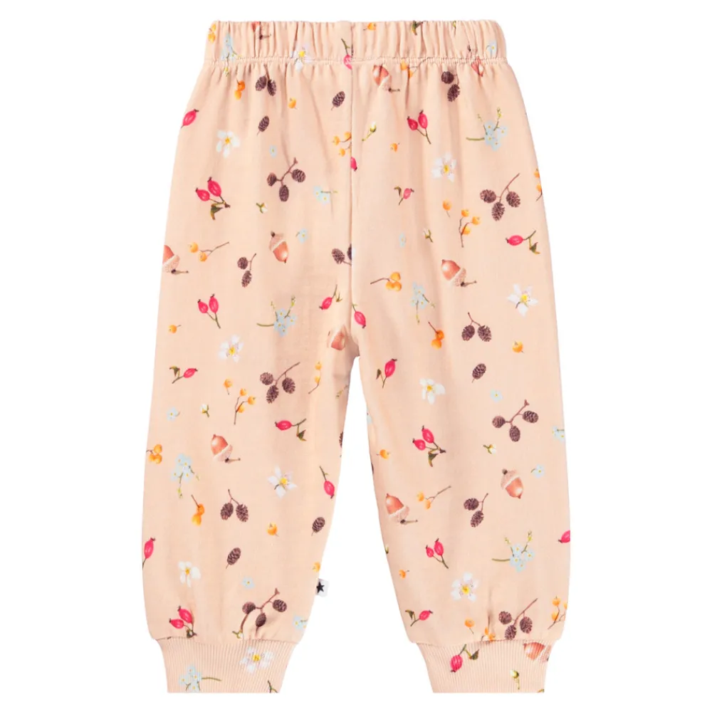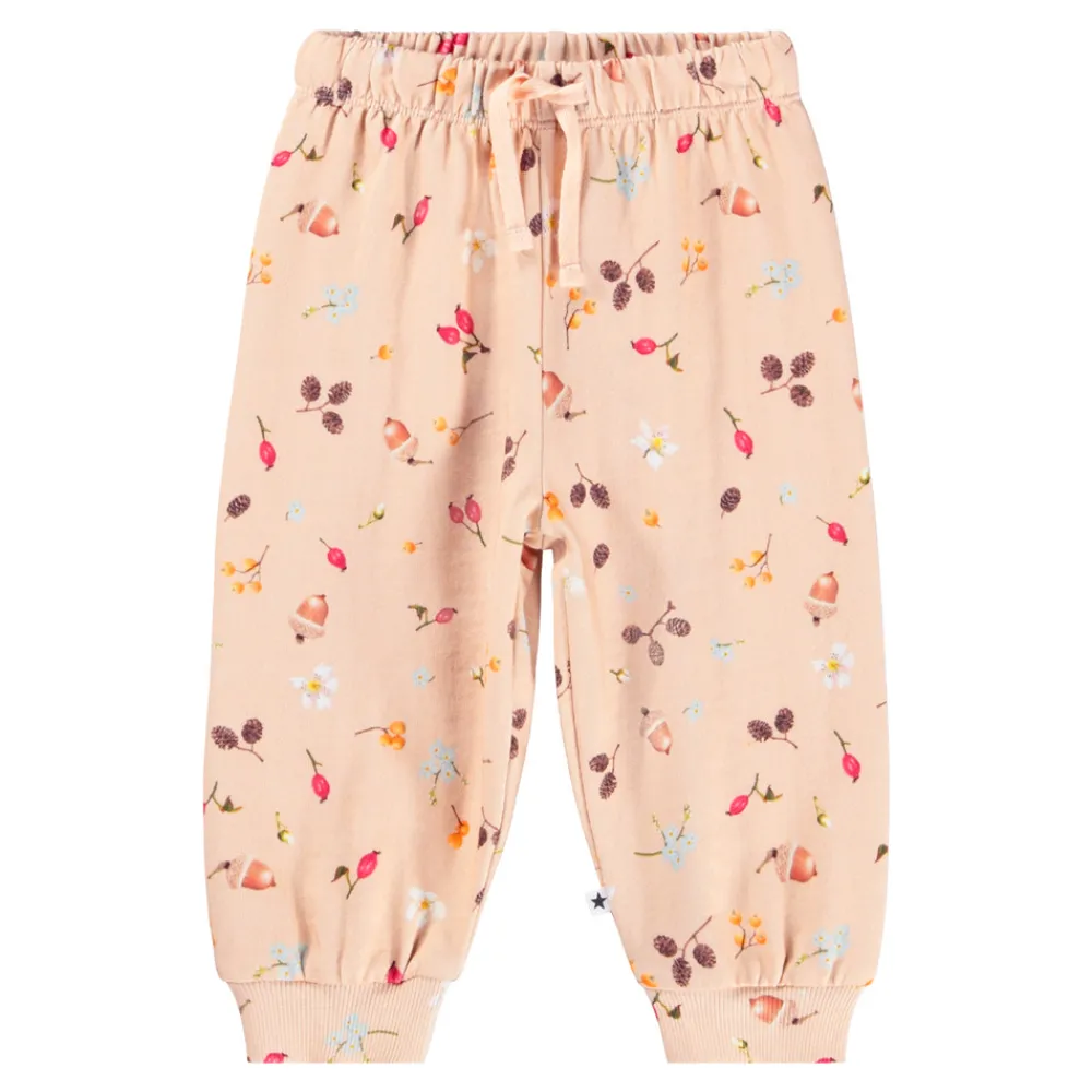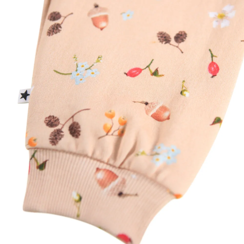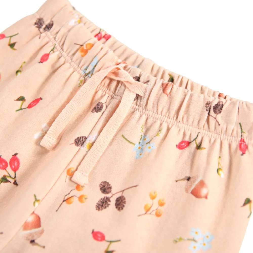 Bukser i økologisk bomuldsjersey med elastik og bindebånd i taljen, der giver en justerbar og behagelig pasform. Ribkanter ved benene og en børstet inderside gør dem ekstra bløde og varme – perfekte til kølige dage.