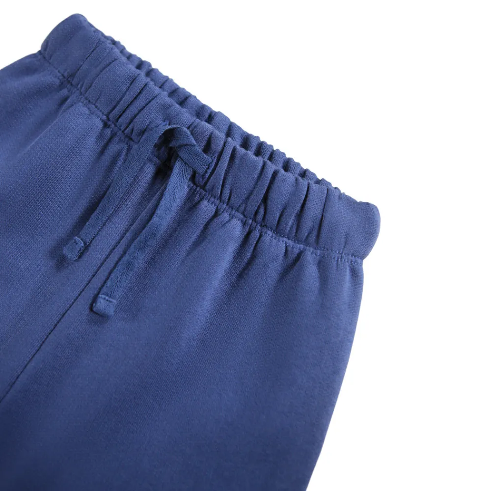 Bukser i blød økologisk bomuldsjersey med elastisk talje, justerbart bindebånd og ribkanter ved benene for optimal komfort.