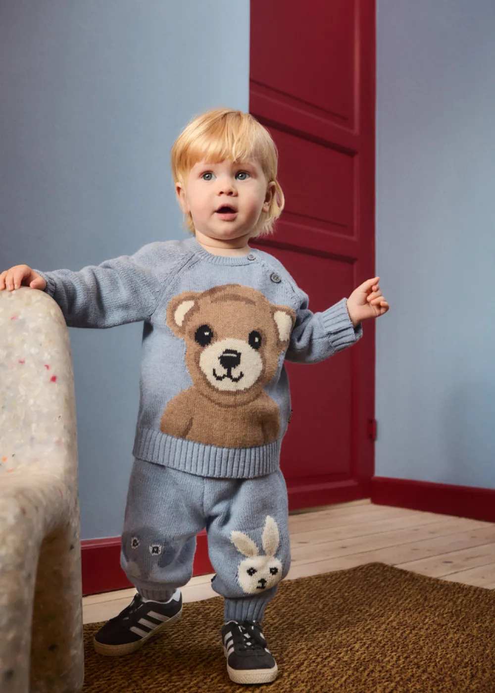 Bløde bukser i ribstrikket bomulds- og uldblanding. Modellen har elastisk talje og ribkanter ved anklerne for en behagelig pasform.