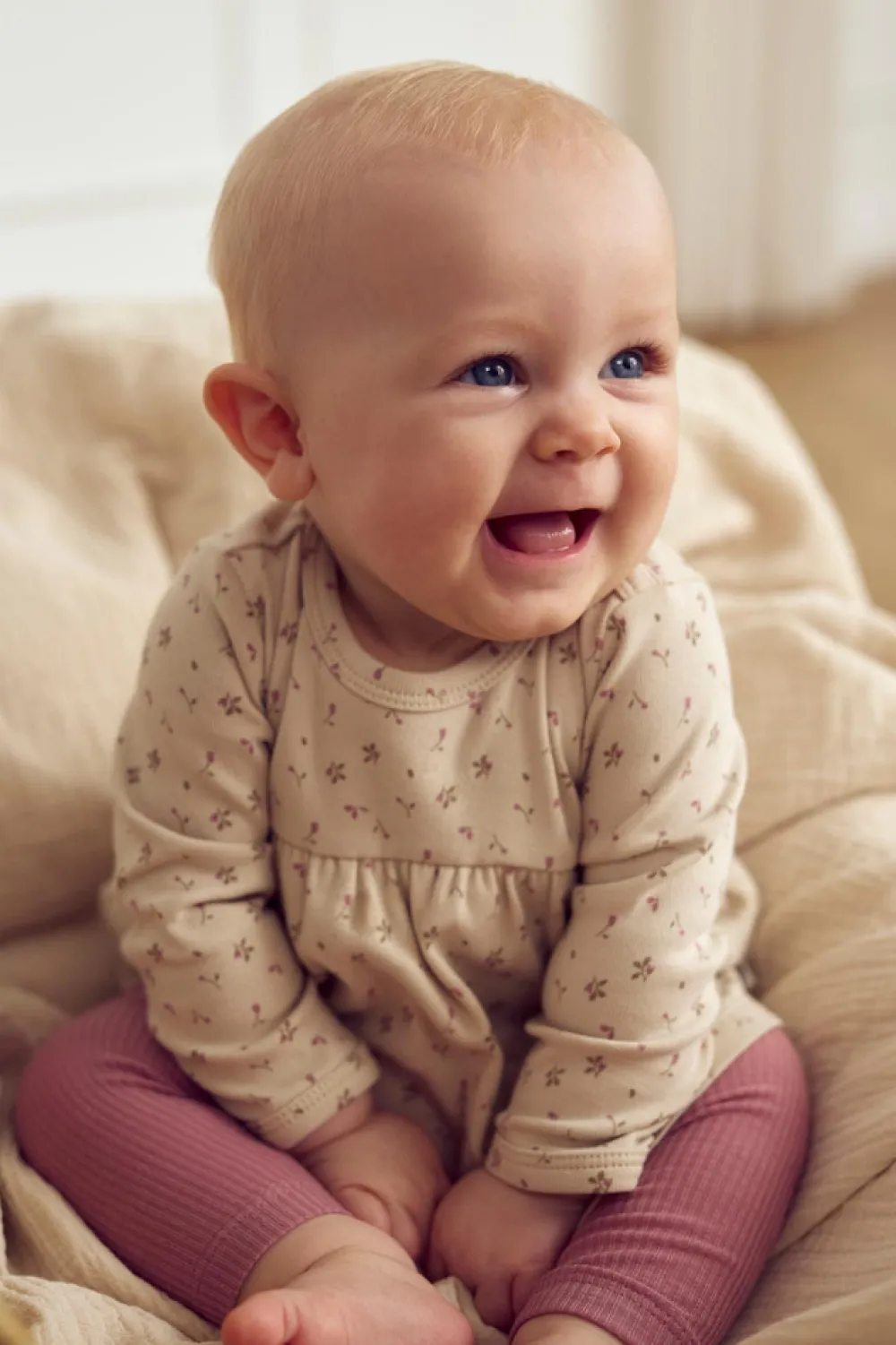 Denne skønne bodykjole kombinerer det praktiske med det festlige. Den har et diskret og smukt blomsterprint over hele kjolen og lange ærmer, der gør den perfekt til både hverdag og særlige lejligheder. Kjolen åbnes nemt med trykknapper i halsudskæringen og forneden.