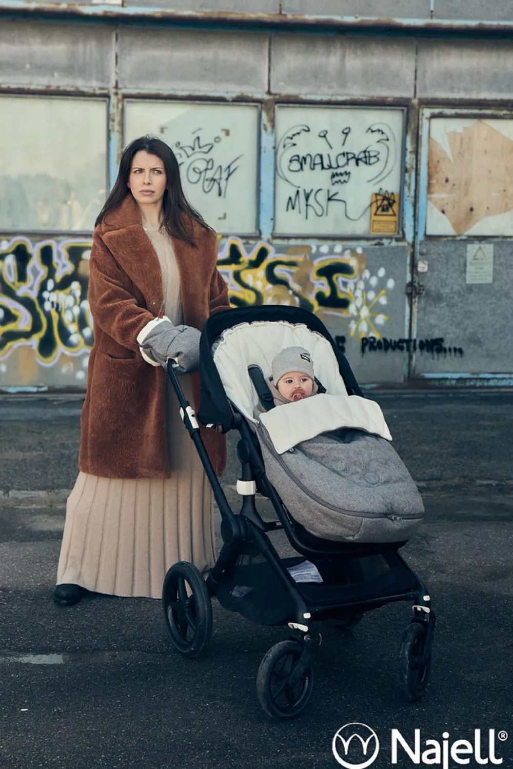 Najell køreposen er en unik kørepose, med det specielle formsyede design passer den både i barnevogn og klapvogns-delen – det gør at du kan bruge køreposen længere. Najell køreposen er lavet til at udholde alle vejr typer: vild vind, stormfuld regn og sprød sne. Det vandafvisende materiale, tykke og komfortable polstring og den temperaturregulerende funktioner gør det umuligt at komme med undskyldninger for at gå udenfor. Du kan åbne op for Najell køreposen alt efter vejret ved at bruge lynlåsen. Hvis barnet har mudrede sko kan der også åbnes op i den nederste del af køreposen. Køreposen er lavet af holdbare materialer af høj kvalitet og designet til at kunne bruges igen og igen.