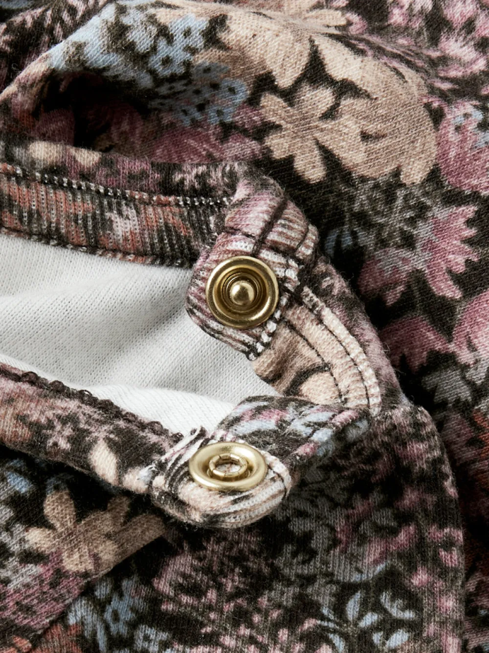 - Ærmer: Lange ærmer Lukning: Trykknaplukning i skridtet, trykknaplukning i skulderen
