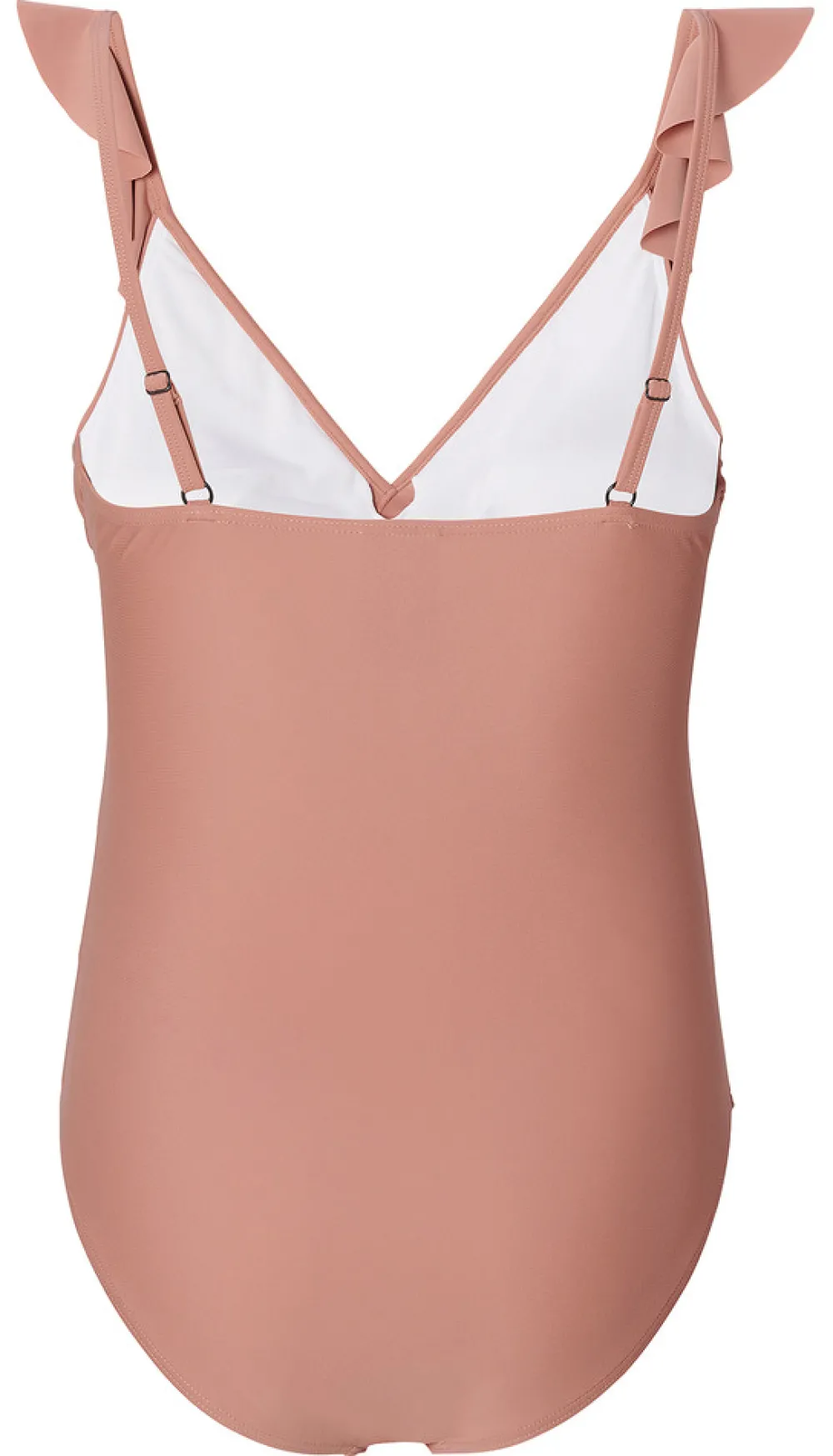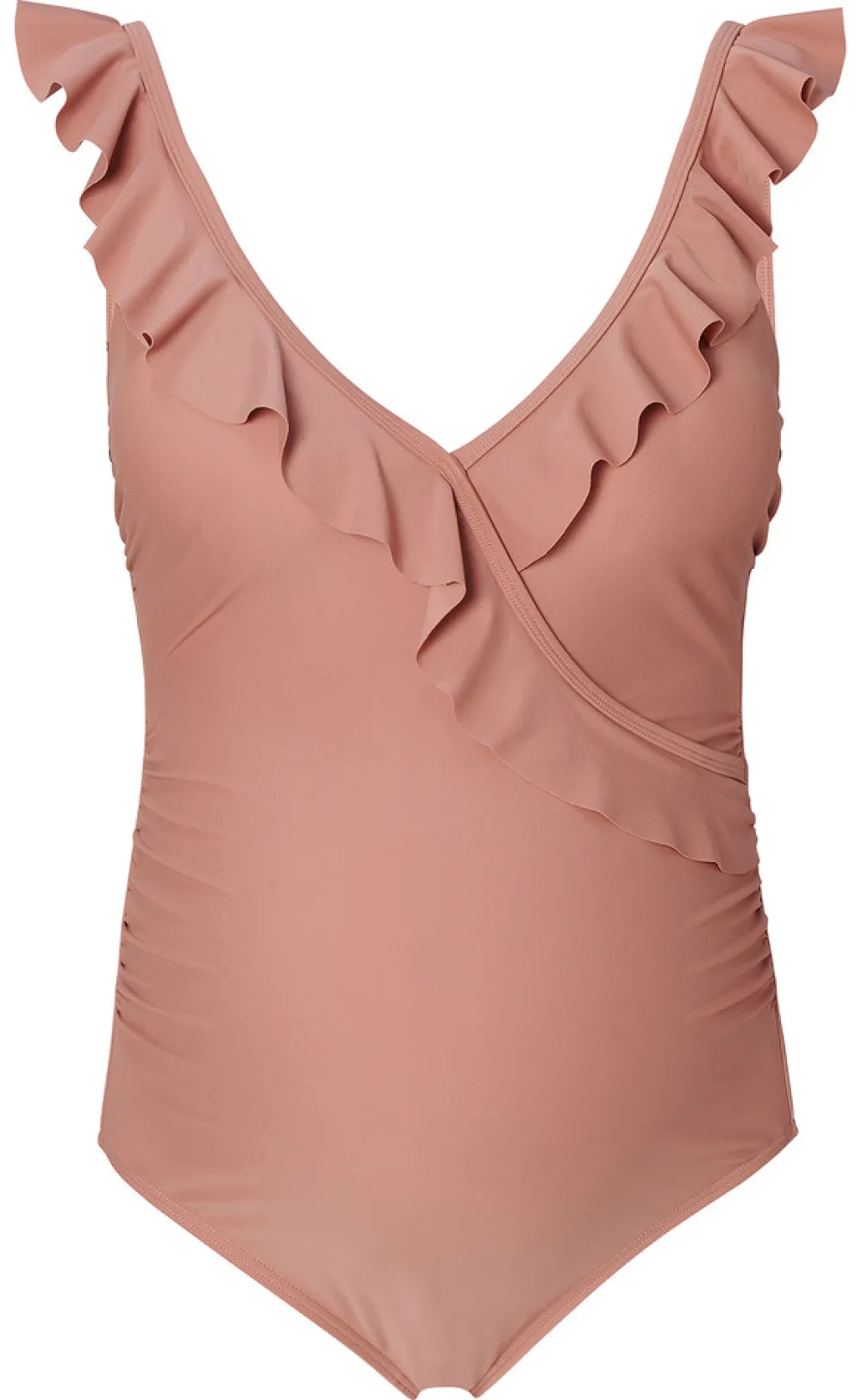 Tid til en forfriskende dukkert? Du vil helt sikkert være klar til det i denne Noppies Maternity Essentials Sima badedragt. Den ensfarvede badedragt har justerbare stropper og en utrolig behagelig pasform. Der er en legende flæsekant langs kavalergangen og stropperne. Praktisk: badedragten er designet på en sådan måde, at du også nemt kan amme din lille. Kopperne inkluderer aftagelig præformet polstring, praktisk! Der er nogle læg omkring maven og taljen: Denne specielle syteknik giver din gravide mave al den ekstra plads, den har brug for til at vokse. Og giver også velkommen støtte. Lækkert behageligt!