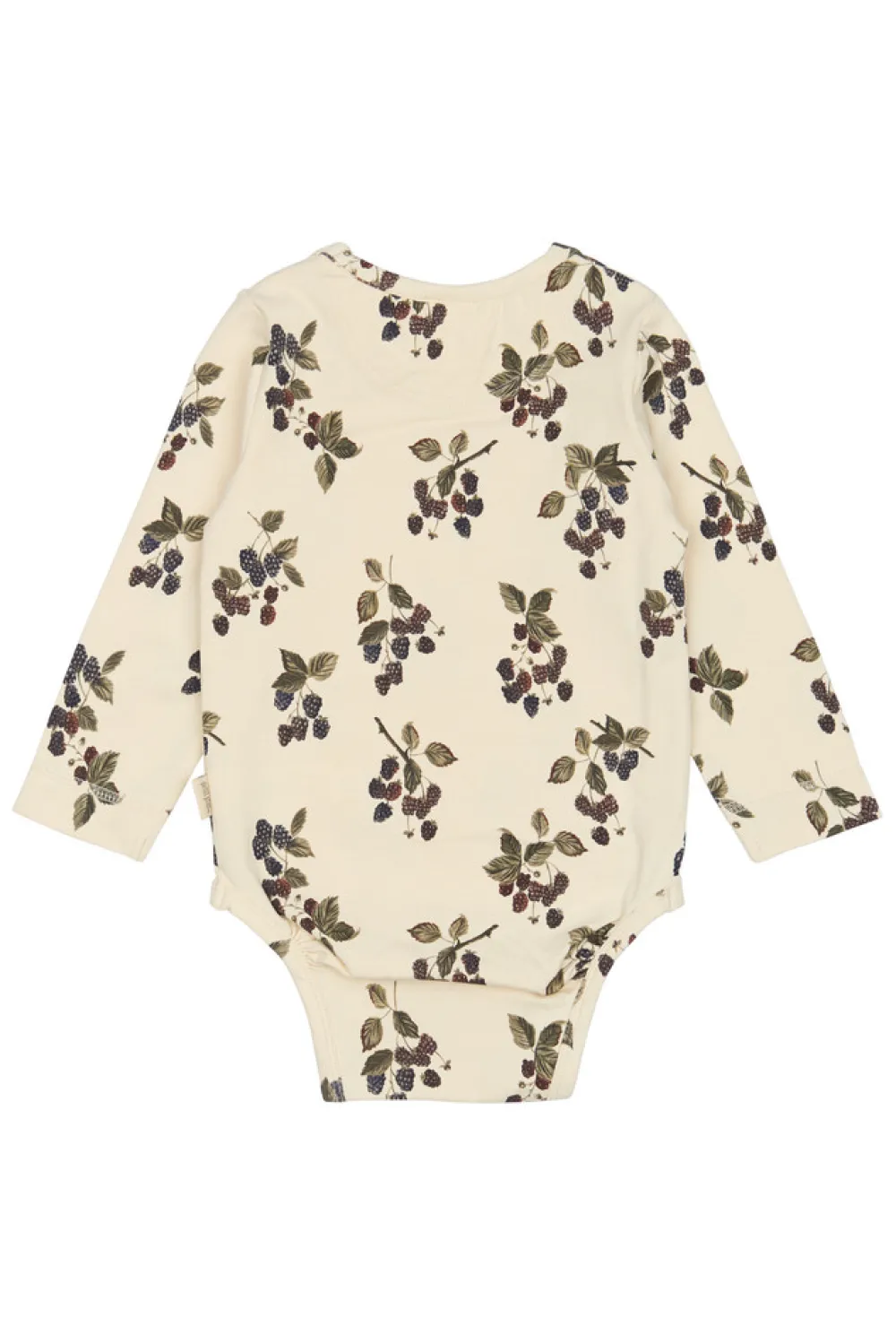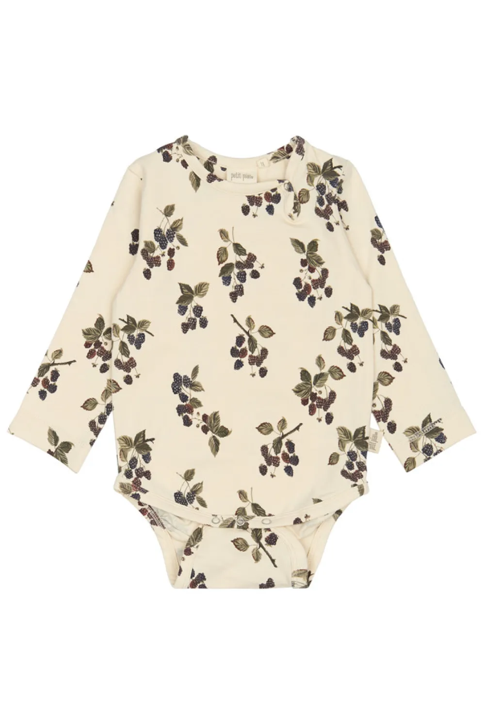 Printede body med akvarelprint fra Petit Piao i økologisk bomuld. Printene er inspireret af naturen og alt omkring den jyske vestkyst. Printene er med en cremefarvet baggrund, så printet er i fokus. I halsåbningens venstre side er der en trykknap som gør det nemt at få den over barnets hoved. I bunden er der tre trykknapper, som gør det let at stifte barnet. Der er 5% elastan i, så barnet har let ved at bevæge sig og lege. Produceret i Indien.