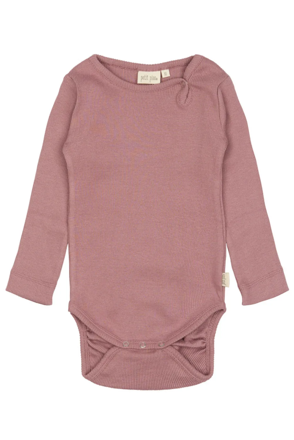Petit Piao ensfarvet body er i økologisk bomuld. I halsåbningens venstre side er der en trykknap som gør det nemt at få den over barnets hoved. I bunden er der tre trykknapper, som gør det let at stifte barnet. Body’en er strækbare og fremstillede af en lækker blanding af bomuld og modal. Ribkvaliteten giver et meget fleksibelt materiale, så barnet har let ved at bevæge sig og lege.