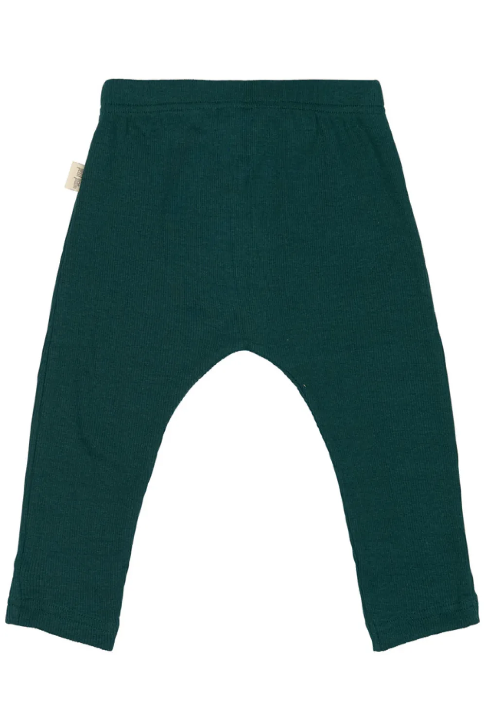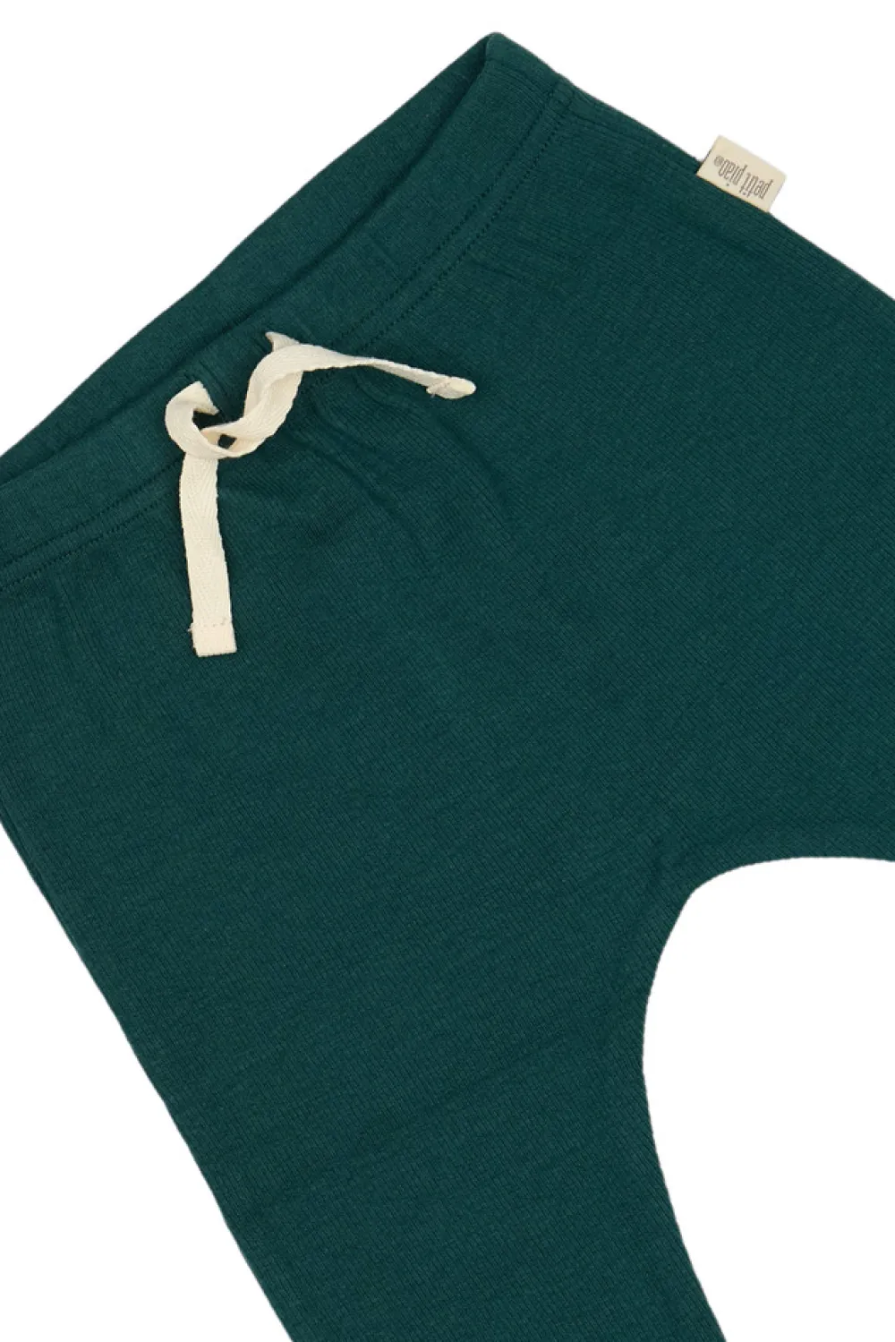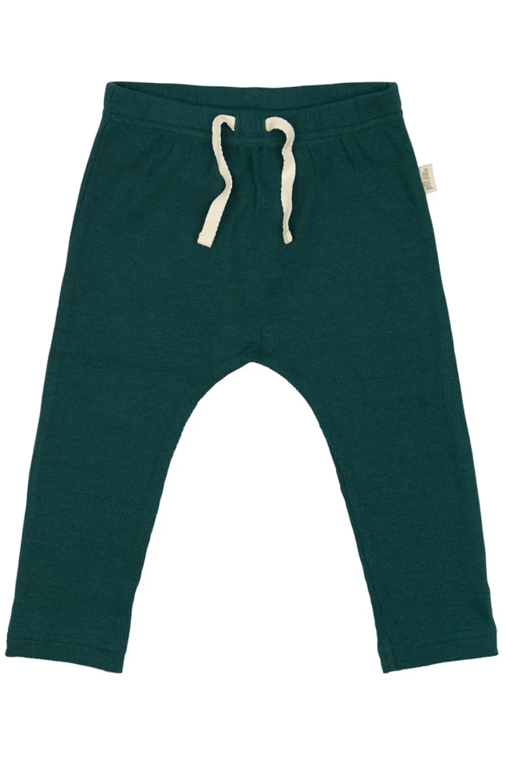 Petit Piao bukser med ensfarvet ribstruktur. Bukserne har en god elastikkant i livet med hvide bindebånd til justering i livet. Bukserne er strækbare og fremstillede af en lækker blanding af bomuld og modal. Produceret i Indien.