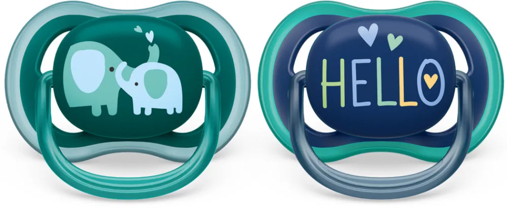 Philips Avent ultra air nat har ekstra store huller til at holde huden tør og en lys-i-mørke-knap, så både du og din elskede kan se og finde den, selv i mørke. Den symmetriske suttehoved respekterer den naturlige form af din babys gane, tænder og tandkød. Den er også ekstra fast, hvilket gør den ideel til voksende mund. Da Philips Avent spurgte mødre, hvordan deres små reagerer på deres teksturerede silikone suttehoveder, sagde i gennemsnit 98 %, at deres baby accepterer Philips Avent Ultra Air. 2 pak inkl. sterilisator boks til mikroovn. Ortodontisk og BPA-fri.