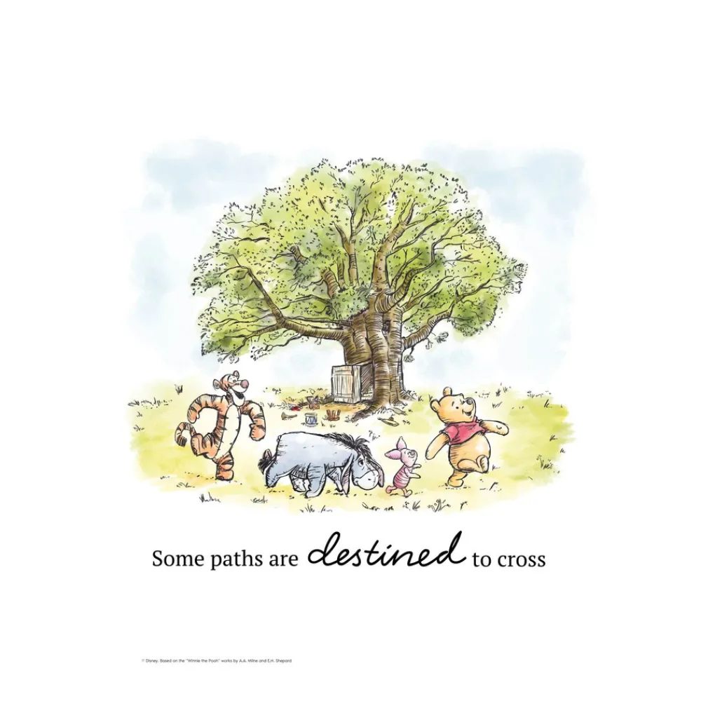 Denne plakat fra Poster & Frame bringer hygge og nostalgi ind i hjemmet med et elsket motiv fra Peter Plys universet. Her ses Peter Plys, Grisling, Æsel og Tigerdyret samlet under det store træ, hvor venskab og eventyr blomstrer. Den fine akvarel-stil og det inspirerende citat gør plakaten til et oplagt valg til børneværelset, men den vil også pynte i stuen eller som en gave til en, du holder af. Plakaten er trykt på kvalitetsmateriale, så farverne står flotte og klare, og den officielle Disney-licens sikrer, at du får et produkt med autentisk udtryk og høj standard.
