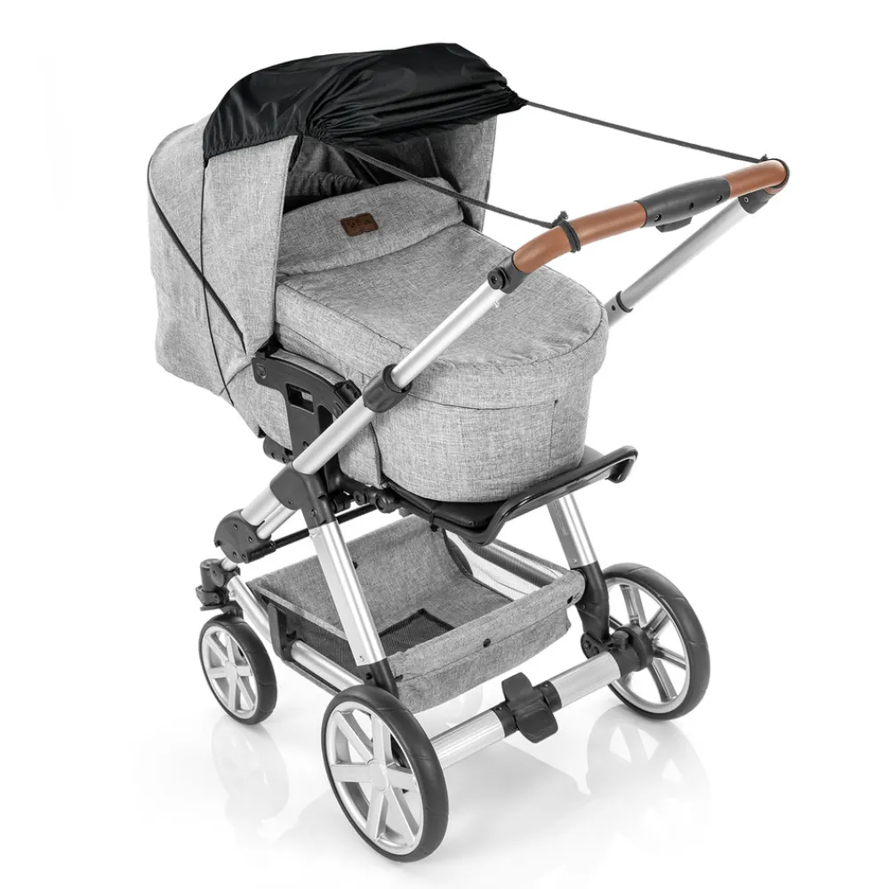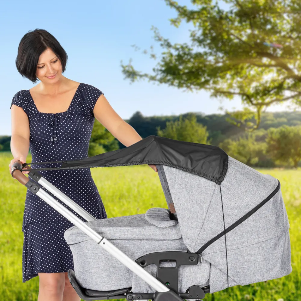 Praktisk og enkelt solsejl der beskytter barnet mod solskoldning, UV-stråling, overophedning inde i vognen og beskytter også mod let regn. Solsejlet er hurtigt og nemt at sætte på med elastik under vognen og bindebånd til styret. Det er nemt at justere i forhold til solens position, og kan maskinvaskes. Produkt størrelse: Ca. 34-52 cm x 72 cm.