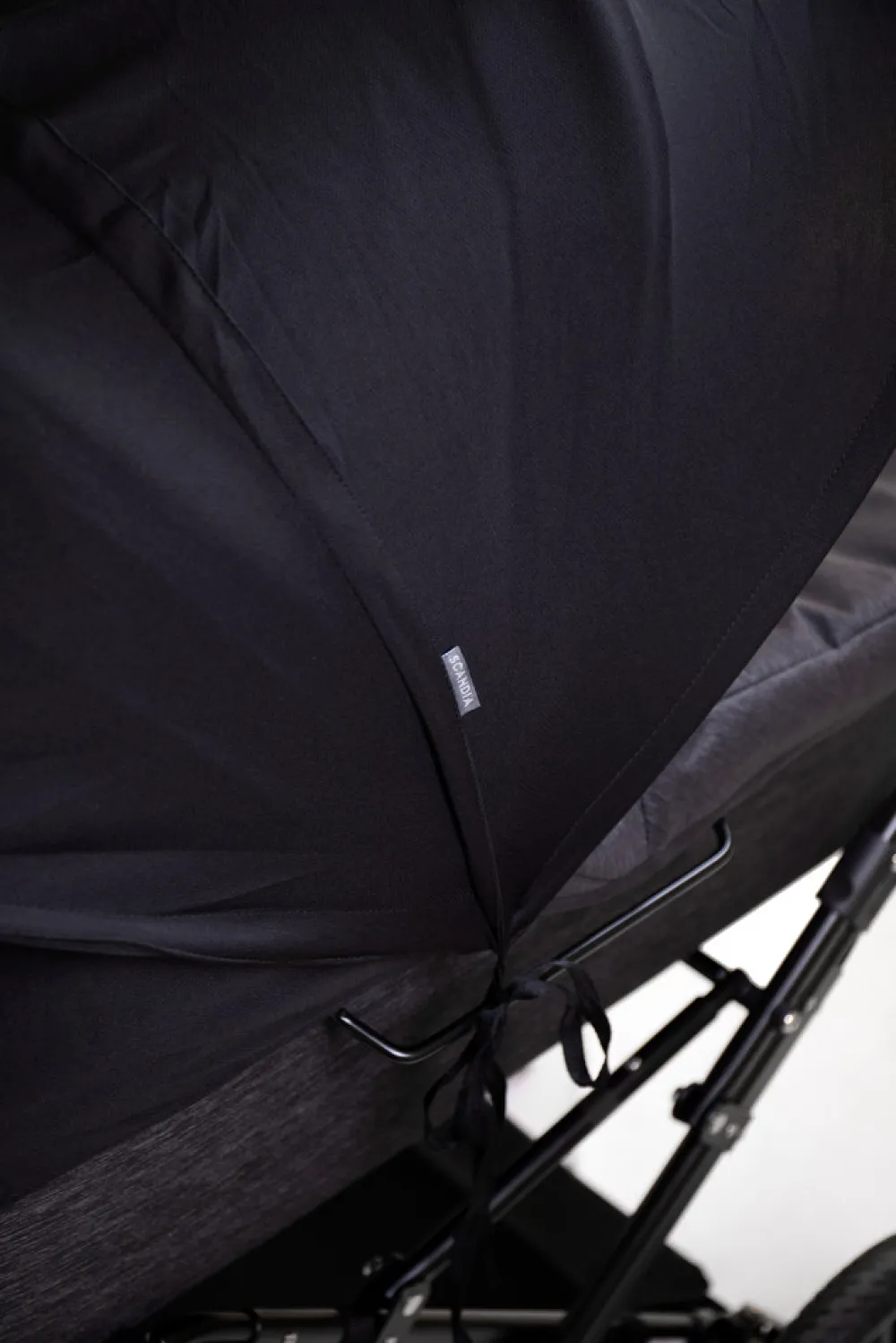 Beskyt barnet mod sol og vind med en ekstra solskærm. Den bindes på vognen, og passer både til barnevogn og klapvogne med lidt større kalecher.