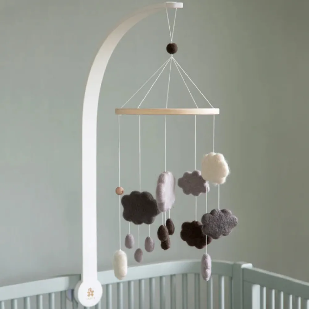 En praktisk uroholder i træ, som let kan monteres og fastgøres mellem tremmerne på Sebra Sengen, Baby & Jr. eller en anden tremmeseng, vugge, puslebord eller kravlegård med tremmer. Hæng en babyuro i uroarmen og skab et hyggeligt miljø omkring babyen. Holderen fastgøres nemt til sengen ved at spænde de to polstrede skiver sammen ved hjælp af drejestykket. De polstrede skriver beskytter samtidig materialet, som de fastgøres på. For at kunne montere uroholderen skal bredden mellem tremmer, hvor holderen monteres, være mindst 8 mm, således at uroholderens skrue kan komme igennem. De to polstrede spændeflader, som har en diameter på 6,7 cm, spændes herefter sammen om tremmerne indtil uroholderen sidder godt fast.