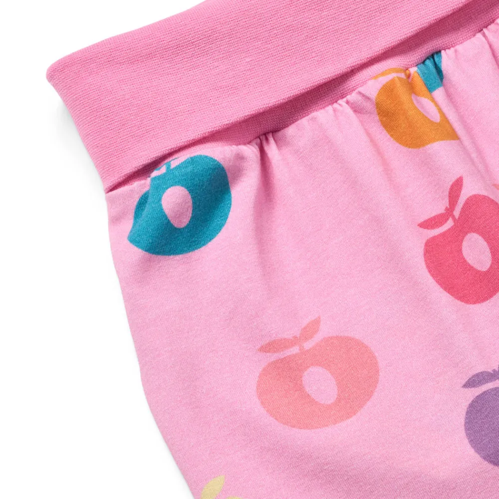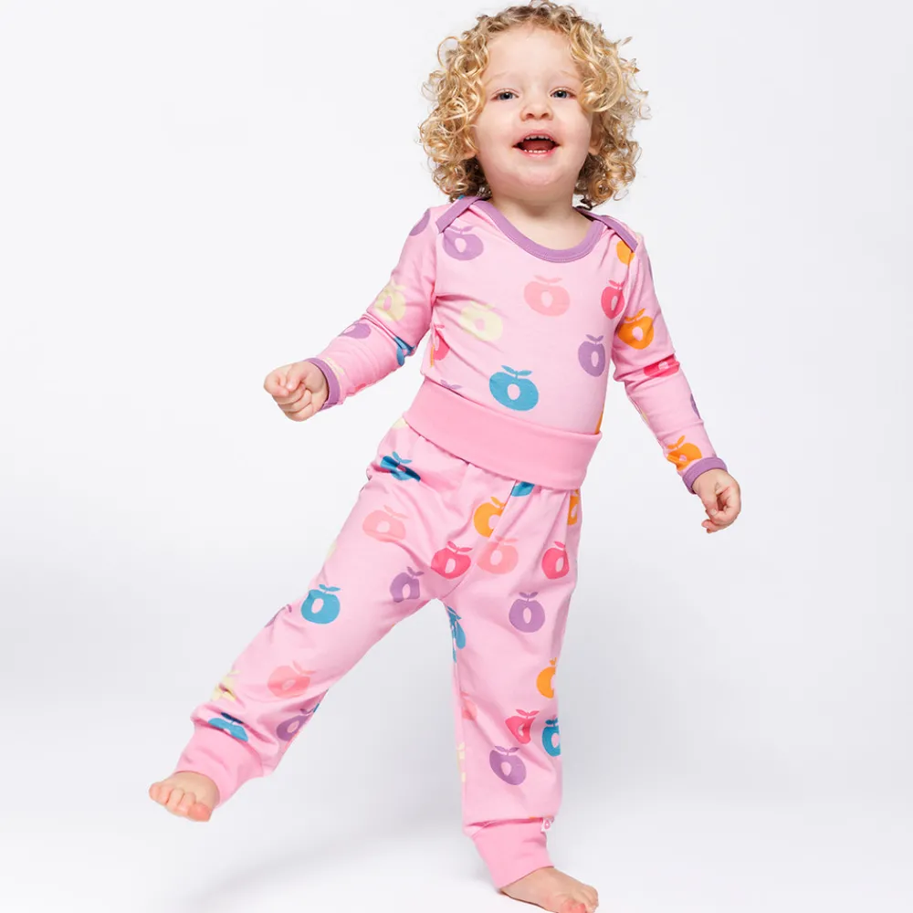 Komfortable babybukser med en frisk og farverig version af vores æble-logoprint, lavet af økologisk, strækbar bomuldsjersey for maksimal komfort. Disse OEKO-TEX Standard 100®-certificerede bukser er produceret og testet fri for skadelige stoffer, hvilket sikrer, at det er sikkert for din barnets hud og sundhed.