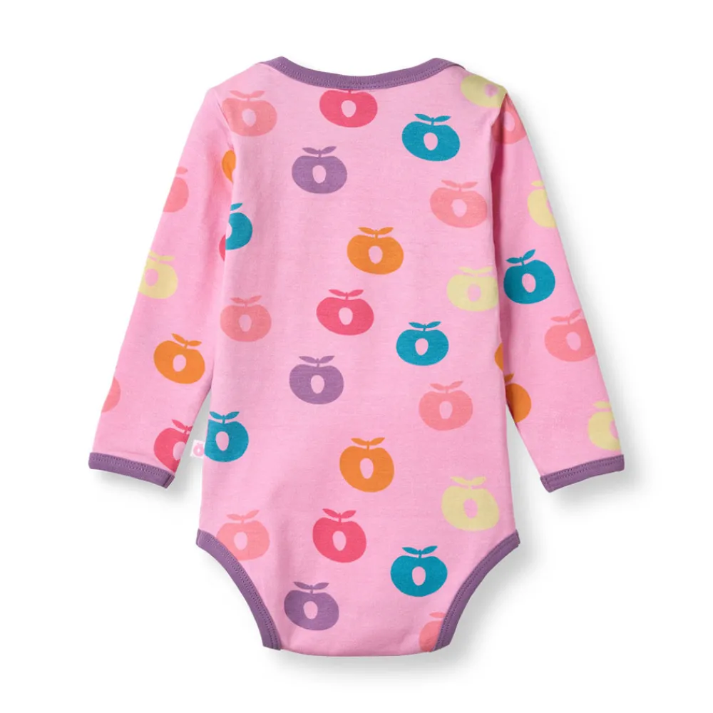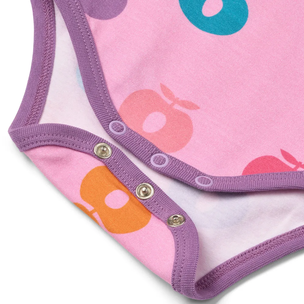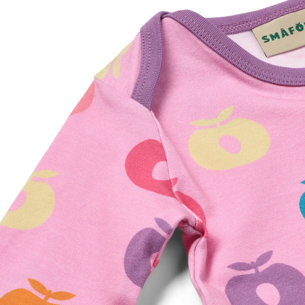Glæd dig over vores farverige æbleprint, med vores æblelogo for at tilføje sjov til ethvert outfit. Småfolks print er tegnet med fokus på glade farver, detaljer og historier. Vores bodyer er en god måde at tilføje personlighed til dit barns garderobe, samtidig med at dit barn kan føle sig komfortabel hele dagen.