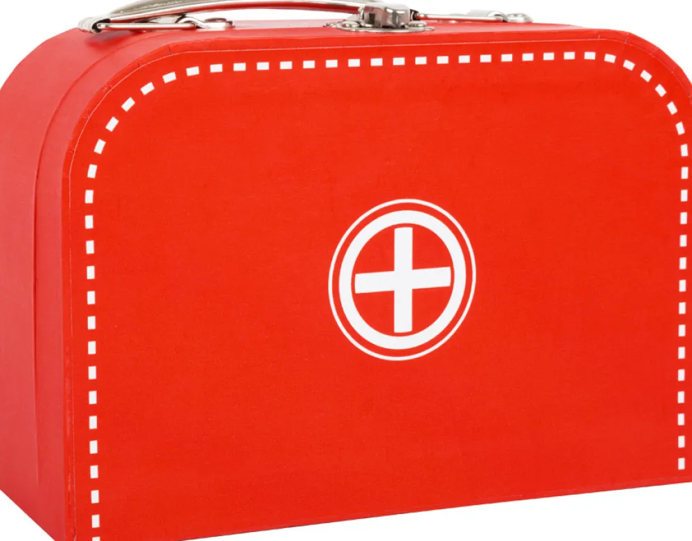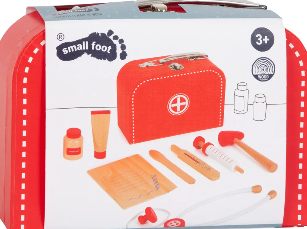 Lægesæt med stetoskop, journal, salve og meget mere.