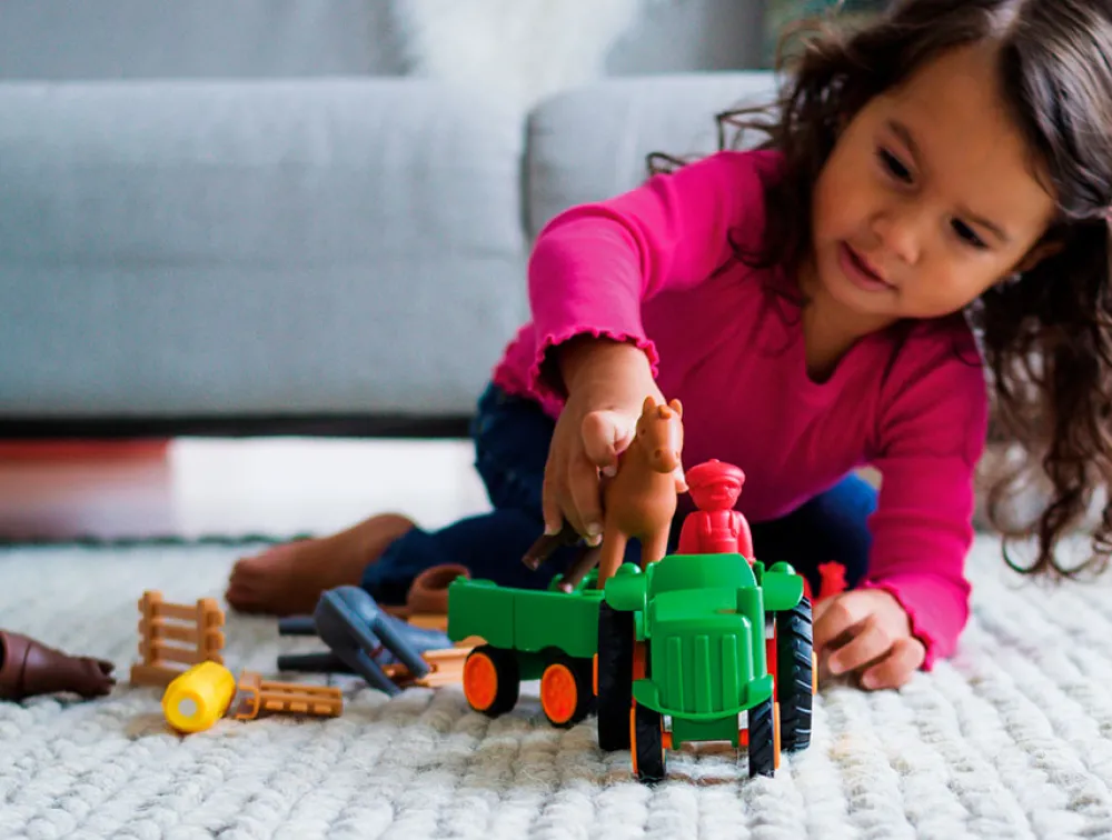Små børn kan sikkert opdage magnetismens magi med SmartMax “My First” kollektionen. De ekstra store traktor- og dyredele klikker nemt fast på de magnetiske stave.