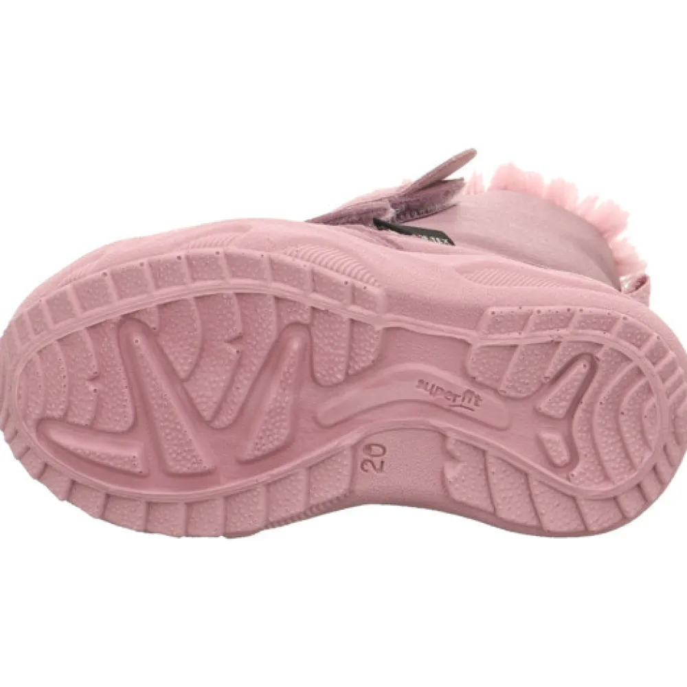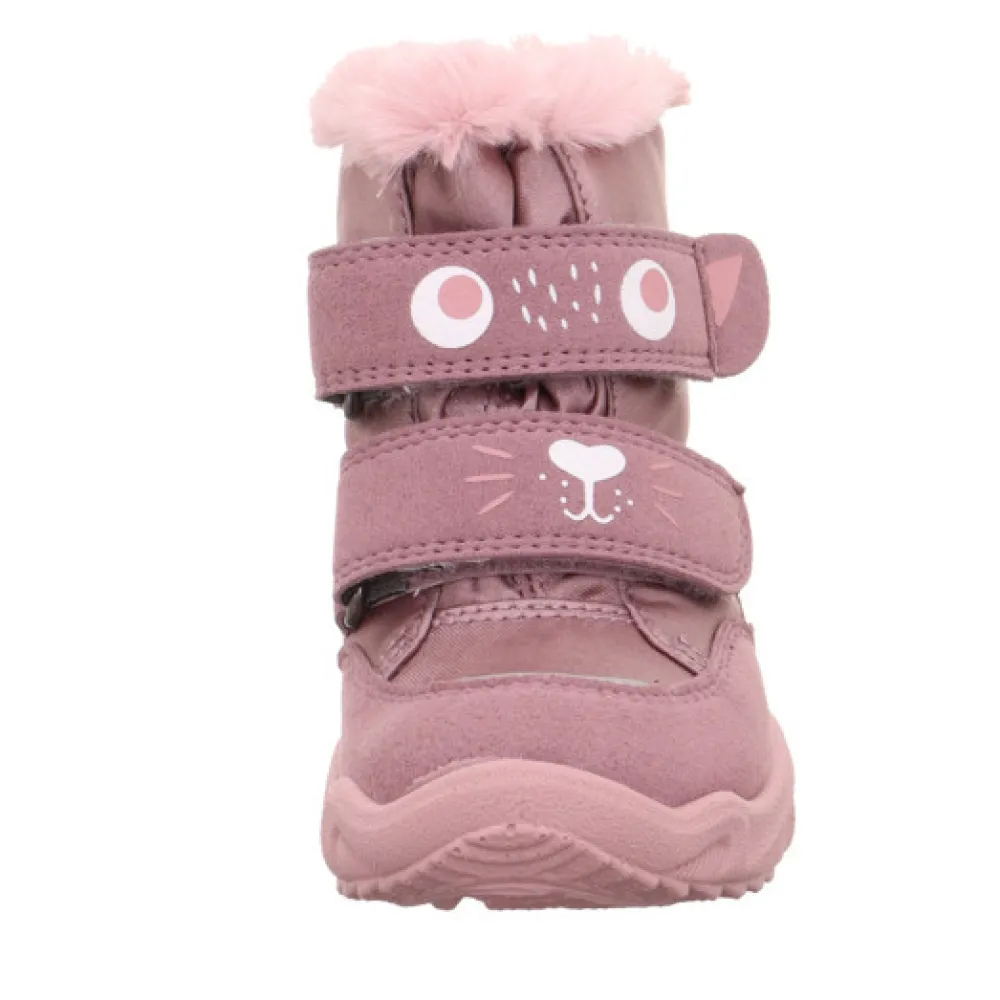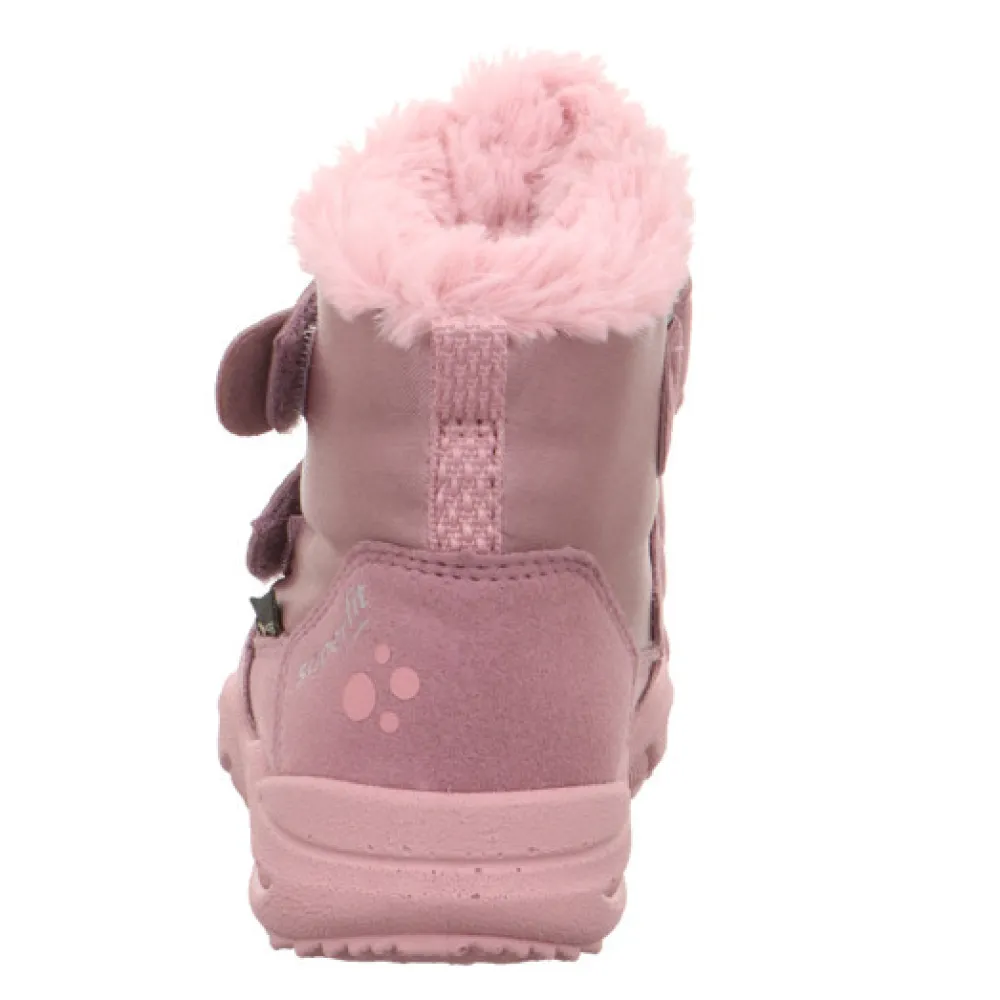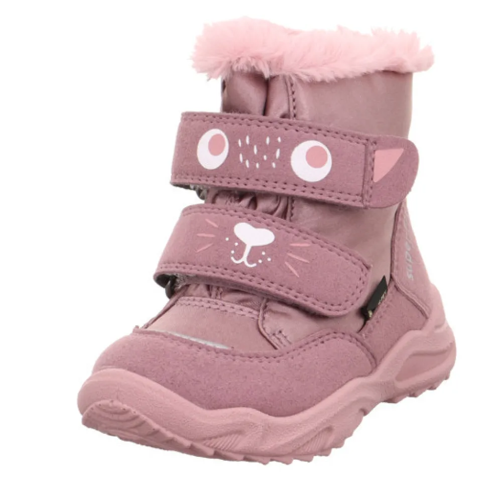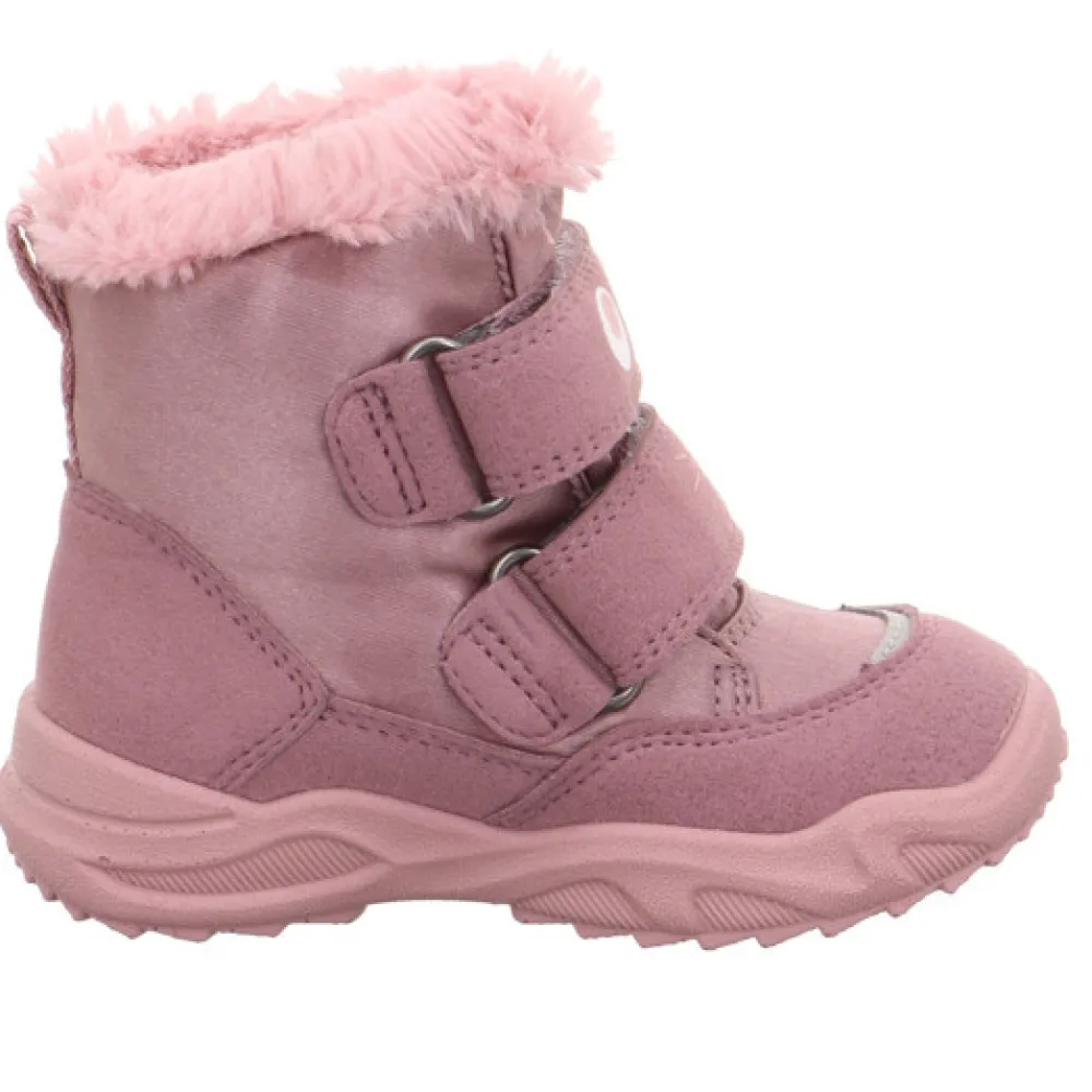 Med GLACIER vinterstøvlen er der ikke noget bedre end at komme ud i sneen. De superfit first walkers inviterer dig til at gøre netop det med deres søde snefnugdesign og hyggelige pelskanter. Skoens funktionalitet sikres af den flotte kombination af skønt blødt ruskind og robuste tekstiler. Reflekterende elementer øger også synligheden. To velcrolukninger gør denne søde støvle nem at tage på og af. Og den tætsiddende GORE-TEX varme foring er åndbar og giver optimal beskyttelse mod vådt og kulde. Den særligt lette og fleksible PU-sål er skridsikker takket være slidbanen. Det betyder et solidt hold i vind og regn. Den lille GLACIER vinterstøvle har en udtagelig indersål.