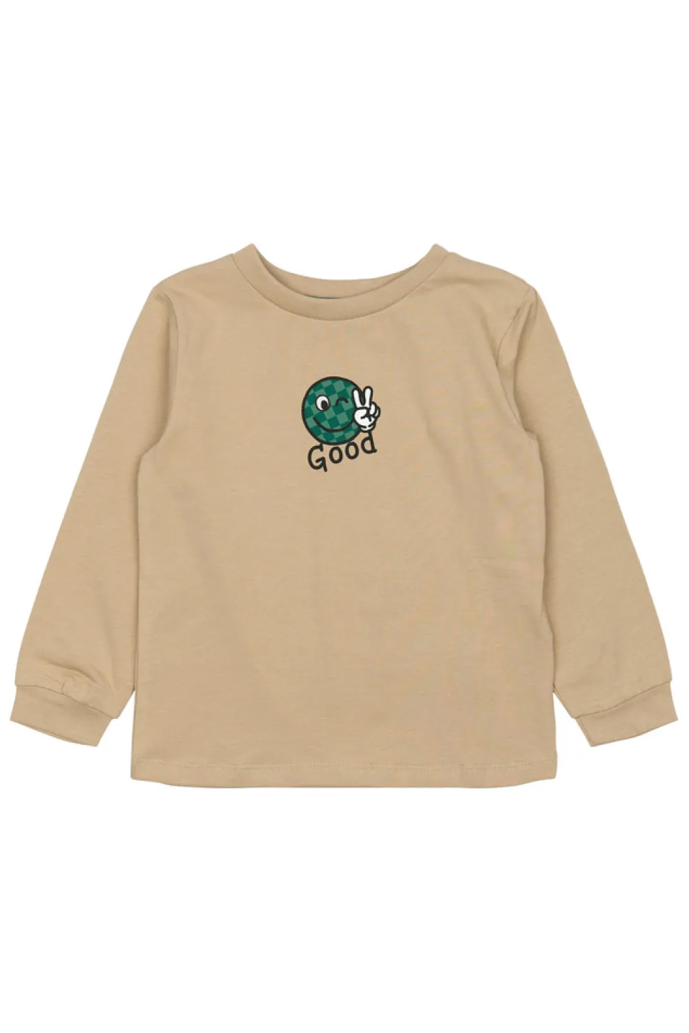 Sweater fra THE NEW siblings med et lille frontprint af en glitrende smiley og teksten “Good.” På ryggen findes en større version af det samme symbol. De fine ribkanter giver både et stilfuldt udtryk og en god pasform. Det er en hyggelig sweater, perfekt til hverdagsbrug og afslappede weekender.