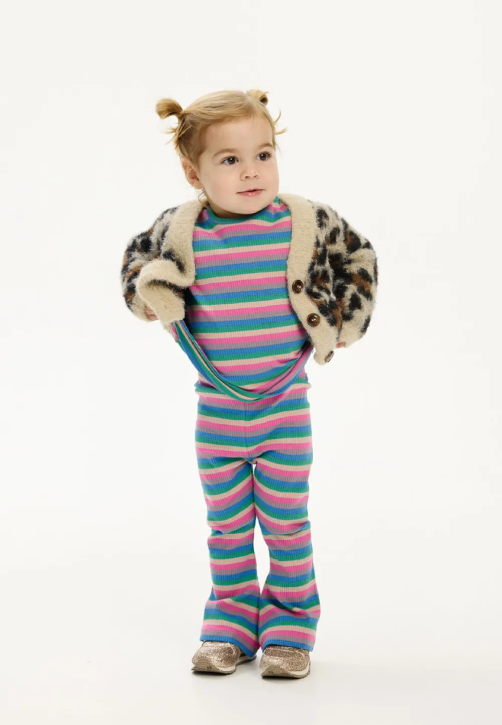 Skønne stribede ribbukser i smukke farver. Den brede elastiske linning sikrer en behagelig og stilfuld pasform, mens de vide ben giver masser af bevægelsesfrihed. Bukserne kan nemt styles op med en fin top og pæne sko til en festlig anledning, eller tones ned med sneakers og en afslappet overdel.