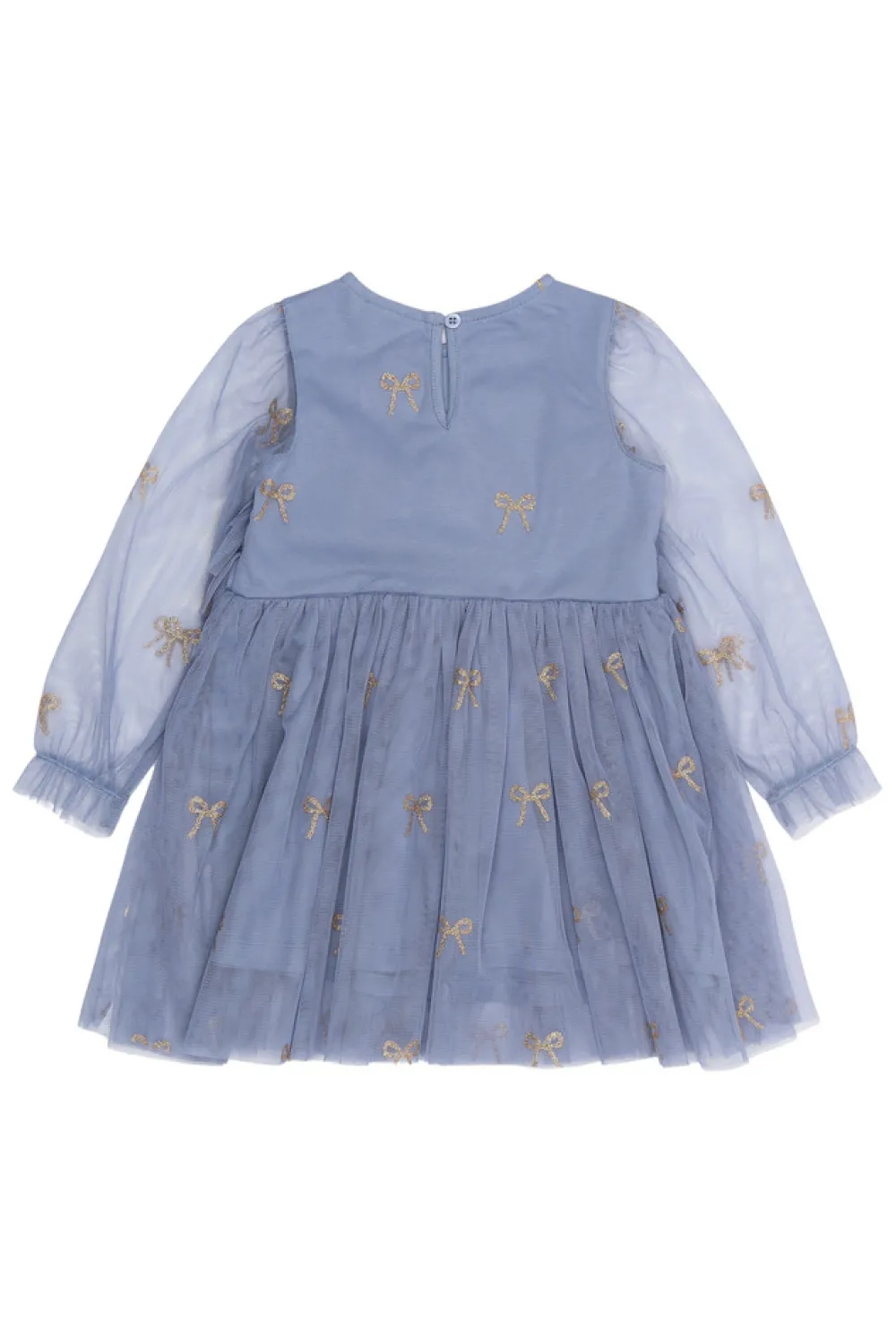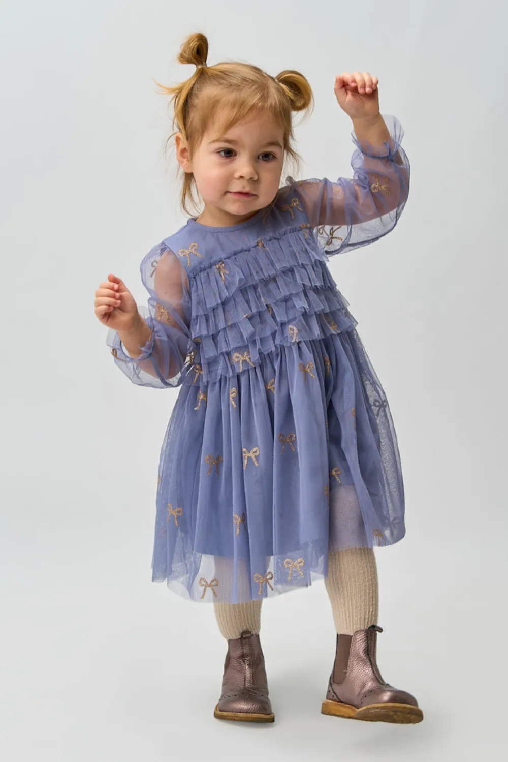Denne kjole fra THE NEW Siblings er en drømmende og elegant stil, perfekt til festlige lejligheder. Fremstillet af lagdelt tyl med smukke broderede sløjfer, giver den et delikat og feminint look. Kjolen har lange gennemsigtige ærmer, rynkede detaljer over brystet og en bred pasform, der skaber en let og luftig silhuet. Et ideelt valg til både særlige begivenheder og udklædningsøjeblikke.
