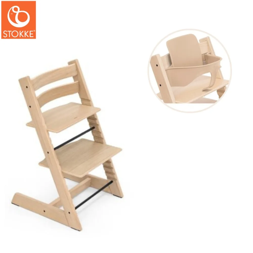 Tripp Trapp® højstolen er produceret i dyrket bøg, som er en stærk træsort, der gør produktet stabilt og holdbart, og sikrer en lang levetid. Tripp Trapp® højstolen løfter barnet op til spisebordet og skaber nærhed og fællesskab mellem barn og voksen, om det er spisetid eller hyggetid ved spisebordret. Det er let at tilpasse sidde- og fodplade i både højde og i dybden, i takt med at barnet vokser. Dermed opnås en optimal siddestilling med god bevægelsesfrihed og støtte for både fødder og ryg. Den stabile fodplade giver dit barn sikkerhed og frihed til at bevæge sig på stolen, hvilket stimulerer barnets motoriske udvikling. Fuld fodstøtte sikrer desuden at barnets ben ikke kommer til at sove. Når stolen er justeret korrekt sidder dit barn behageligt og ergonomisk korrekt uanset alder. Med Tripp Trapp® højstolen kommer dit barn til at sidde med ved spisebordet og nyde måltiderne sammen med resten af familien. Det solide og holdbare design gør at Tripp Trapp® stolen kan anvendes som højstol og senere som en ekstra stol – når der er gæster eller når der er brug for en skrivebordsstol, og med et klassisk look vil stolen aldrig gå af mode.
