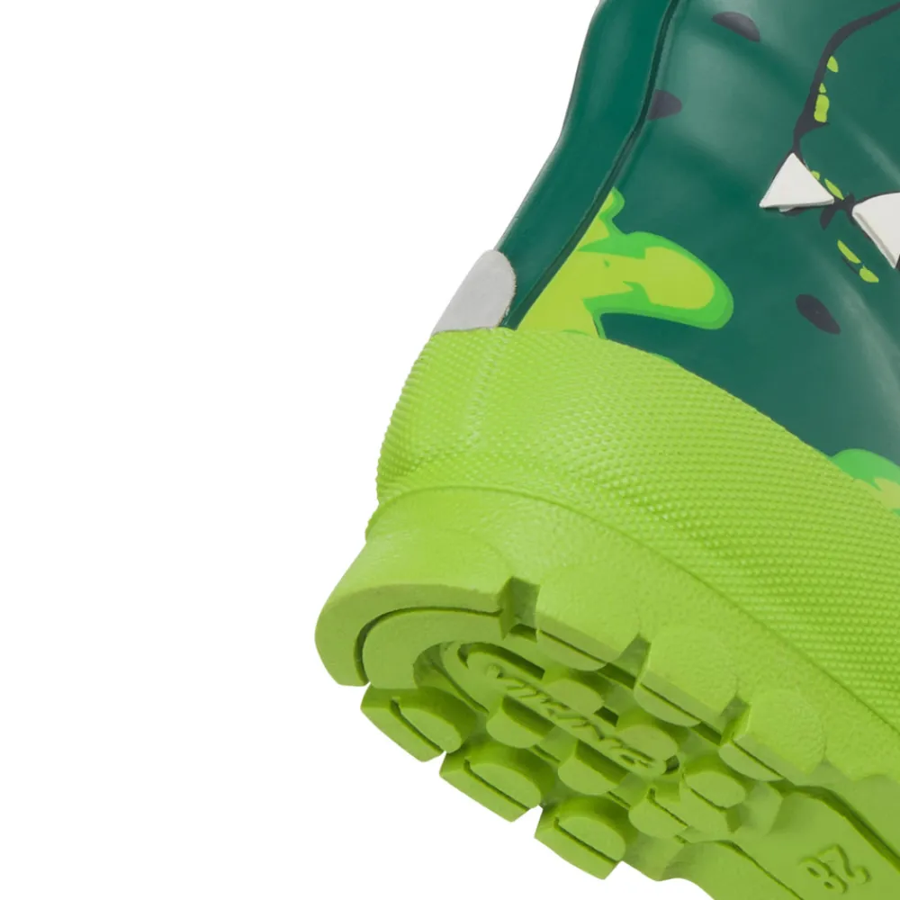 En behagelige læst giver glade fødder – hvilket giver glade børn! Jolly Print har en normal pasform, og hele støvlen er fremstillet af naturgummi, som både er elastisk, slidstærkt og vandtæt. Den har forstærket snude, og indlægssålen kan tages ud, så den nemt kan tørre. Indvendigt finder man et hurtigttørrende syntetisk tekstilfor. Alle gummistøvler fra Viking er håndlavet i naturgummi. Støvlen er desuden fri for PVC og vegansk.