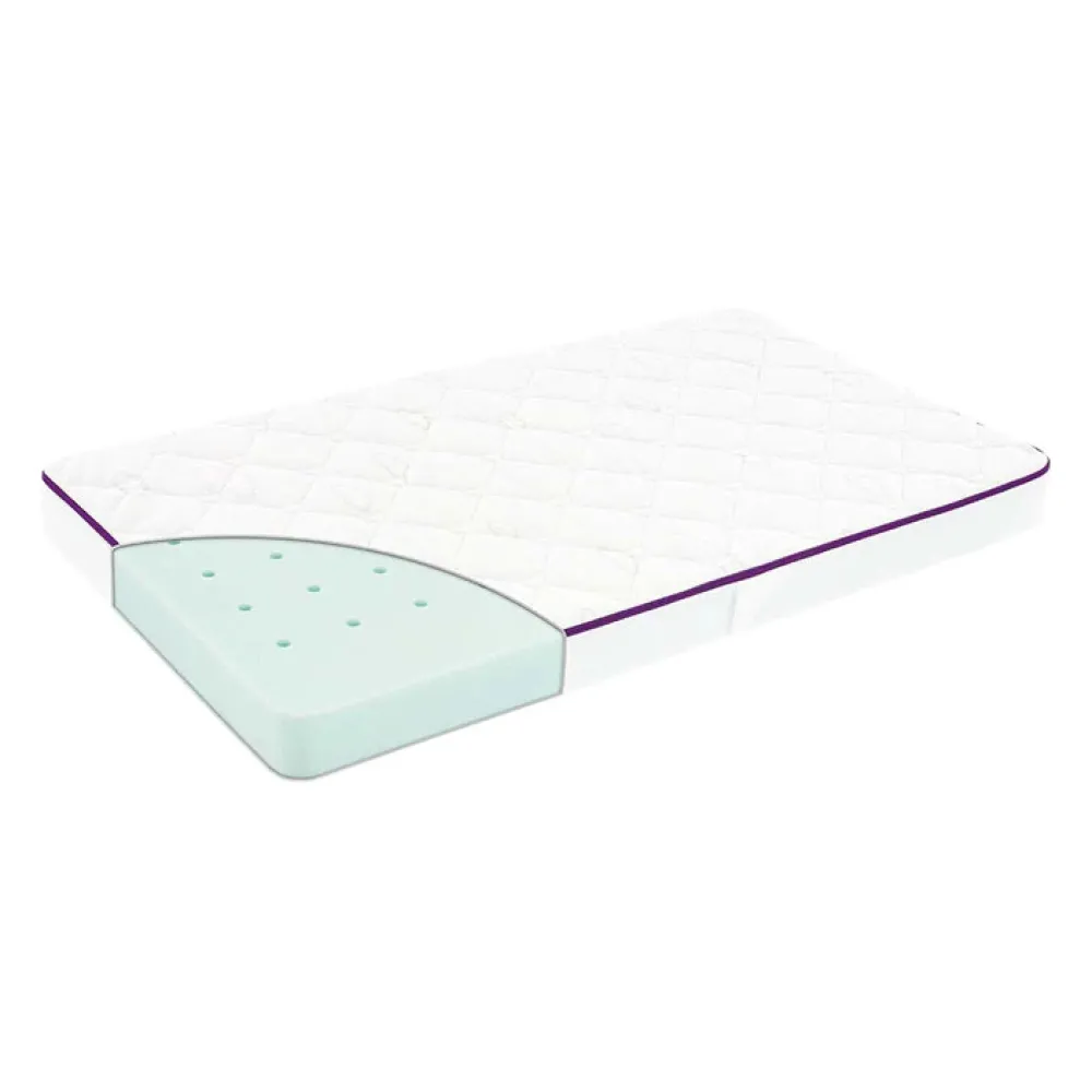 Skum:Madrassen er lavet af koldskum, som er både åndbart og allergivenligt. Madrassen har en høj bæreevne, hvilket sikrer en fantastisk liggekomfort for babyer og små børn.Madrassen har indbygget luftkanaler, som transporterer fugt væk fra barnet og som dermed hjælper dermed barnet til at regulere kropstemperaturen bedre, hvilket ellers er svært for små børn og babyer.