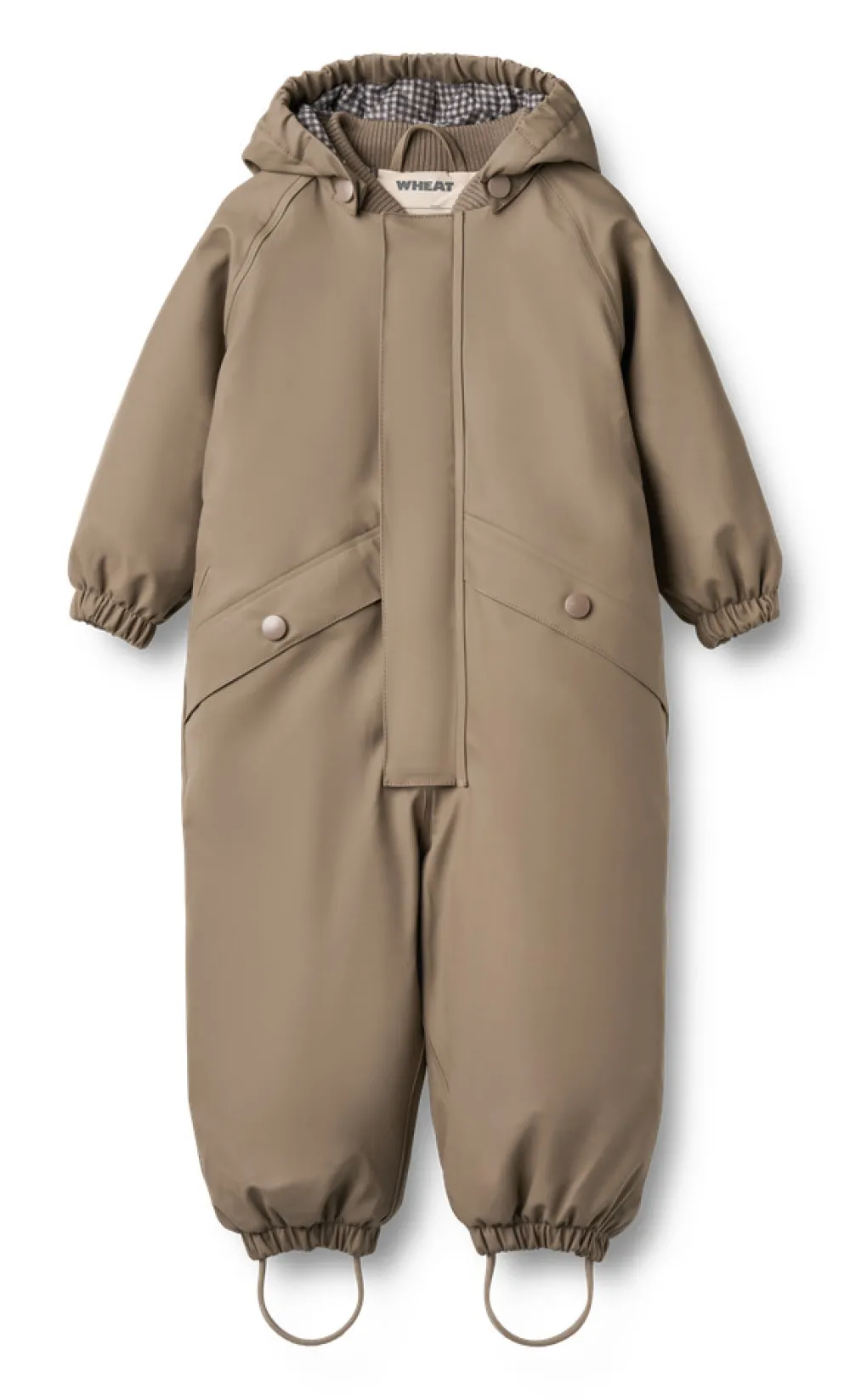 Uundværlig termo regndragt i åndbart- og vandtæt materiale til din baby. Wheat’s populære termo regndragt er en sand vinder i dit barns garderobe. Dragten er lige, hvad dit barn har brug for som overgangsdragt, når sæsonerne skifter. Dragten er i åndbart polyurethan (PU) materiale og er unik, da den holder dit barn både tørt og varmt. Den har mange praktiske detaljer såsom aftagelig og justerbar hætte, ribkrave og aftagelige gummi fodstropper.
