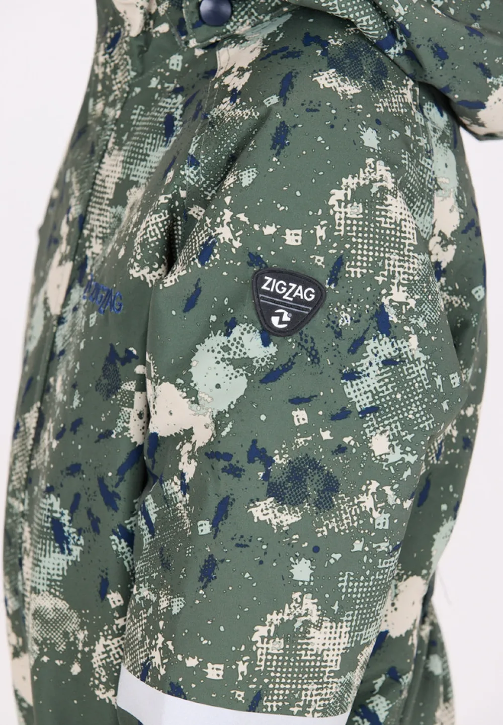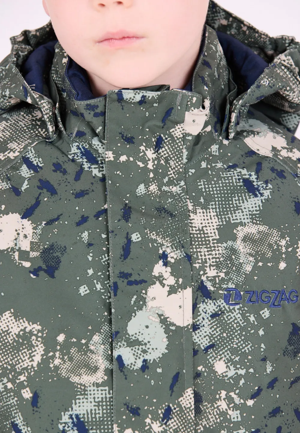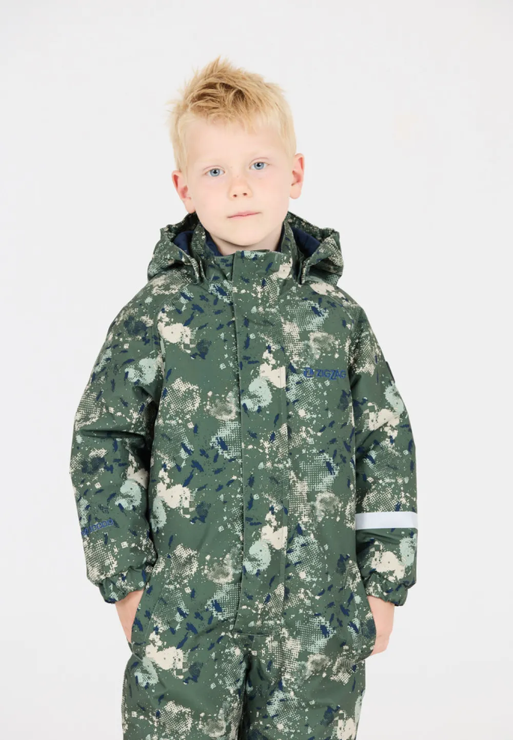 Denne printede flyverdragt til børn er en fin model til overgangs- og vinterperioderne, hvor kulden og sneen langsomt sniger sig ind. Flyverdragten fra ZigZag har et varmende polyesterfyld, som øger komforten, samtidig med at membranen holder på vind og vand væk fra kroppen. Derudover er ZigZag Tower flyverdragten designet med et smart mønster, har snøre i taljen og aftagelig hætte.