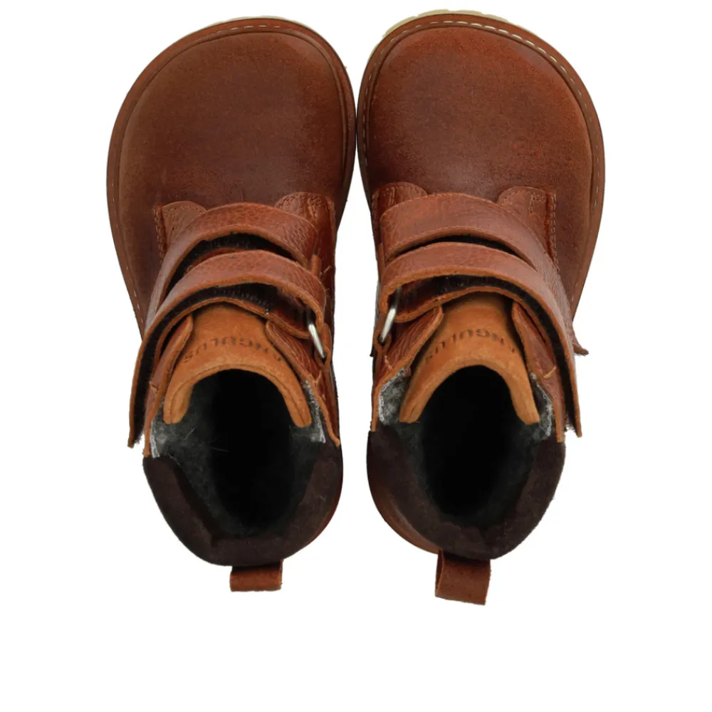 Angulus TEX-støvle i cognac/dark brown er skabt til aktive børn, der har brug for fodtøj, der kan holde til leg og eventyr i al slags vejr. Støvlen har en ekstra slidstærk overflade og en kraftig, profileret gummisål, som giver et godt fodfæste på både våde og glatte underlag. Den praktiske velcrolukning gør det nemt for barnet selv at tage støvlerne af og på, og sikrer samtidig en god pasform. TEX-membranen holder fødderne tørre, mens den bløde indersål sørger for komfort hele dagen. Støvlen er designet i smukke naturfarver, der passer til både hverdag og udendørs aktiviteter.