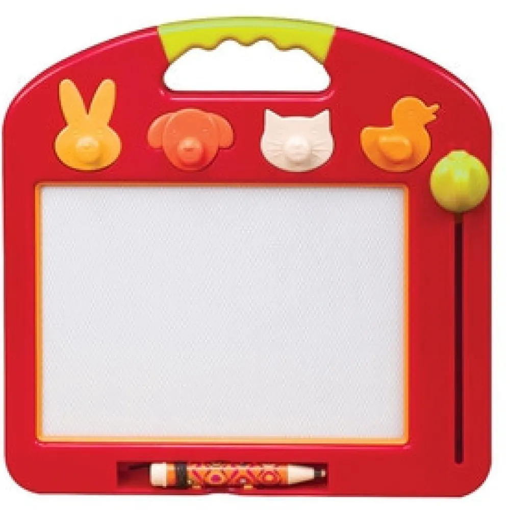 Dette fantastiske tegnebræt har 4 magnetiske dyrestempler og en magnetiske blyant, som du kan tegne alle dine ideer med. Når du er færdig, skal du blot trække i knappen og tavlen bliver ren, og du kan begynde forfra.