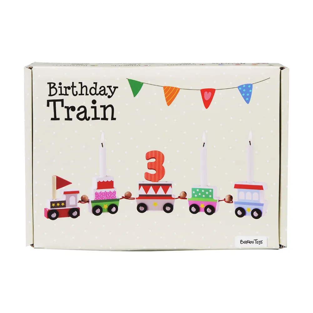 Toget har et klassisk design, der helt sikkert vil glæde både børn og voksne. Hver vogn er smukt udformet toge med livlige farver, der vil fange opmærksomheden. Man kan også placere fødselsdagslys på togvognene, hvilket gør det til det perfekte midtpunkt til dit barns fødselsdagsbord.