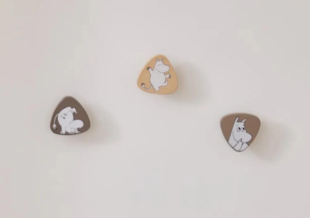 Organiser dit barns værelse med et strejf af charme med disse dejlige Moomin knager. Dette sæt med tre knager har forskellige Mumi-figurer, der tilføjer et sjovt og funktionelt element til væggen. De neutrale toner og naturlige trædetaljer sikrer, at disse knager blender problemfrit med enhver indretning, hvilket gør dem til en perfekt tilføjelse til soveværelser, legerum eller entreer.