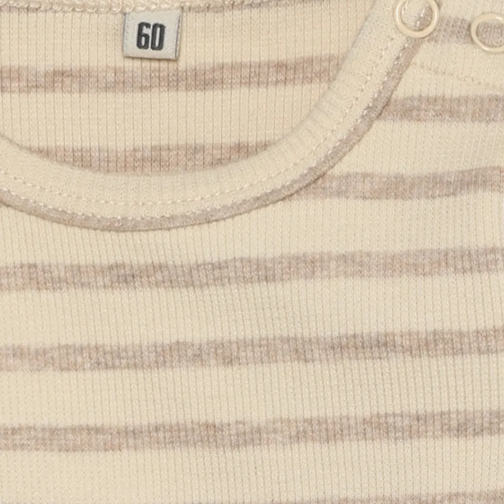 Blød og behagelig body i ribbet bomuld med klassiske striber. Den langærmede design giver ekstra varme, perfekt til køligere dage. Trykknapper i skridtet og på skulderen gør det nemt at tage bodyen af og på. En hverdagsfavorit til små opdagelsesrejsende!